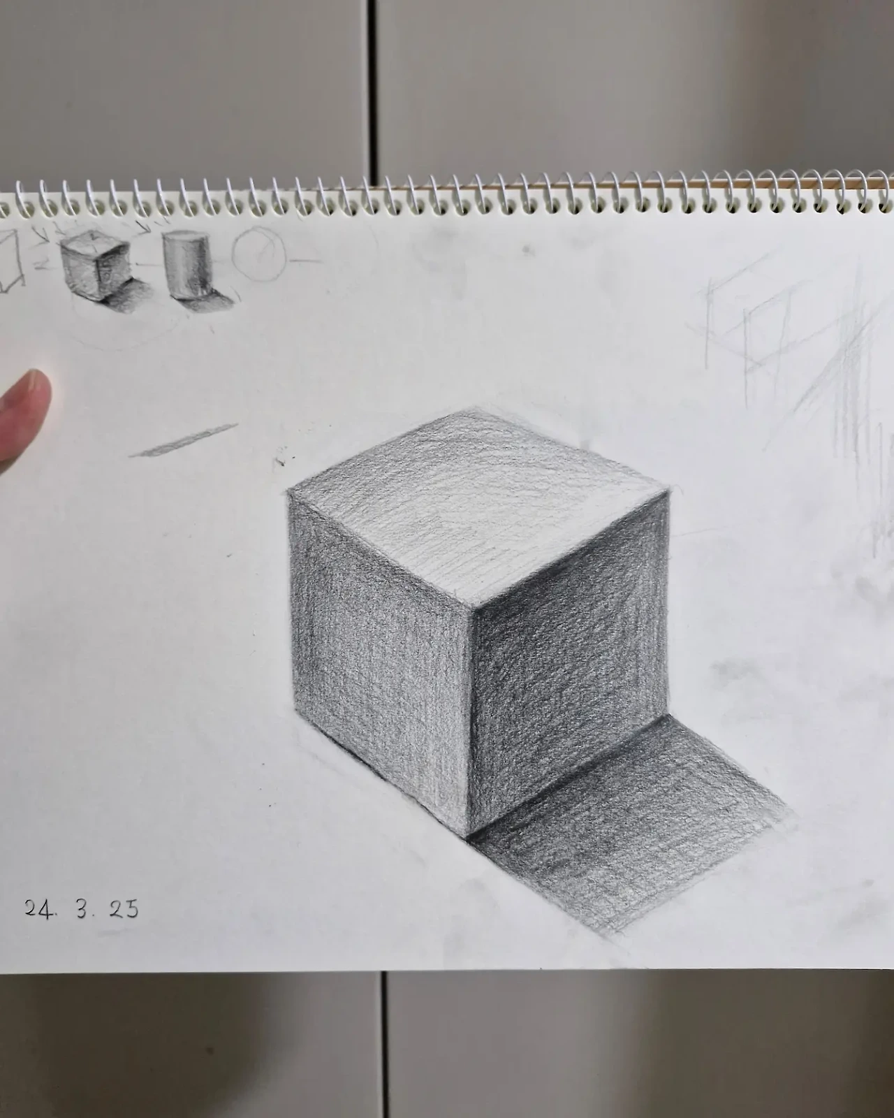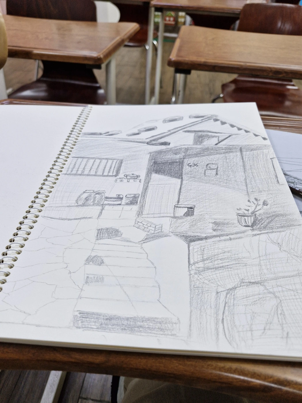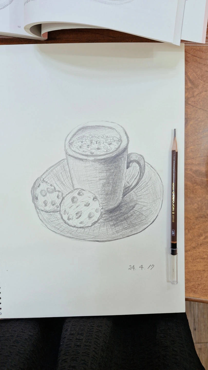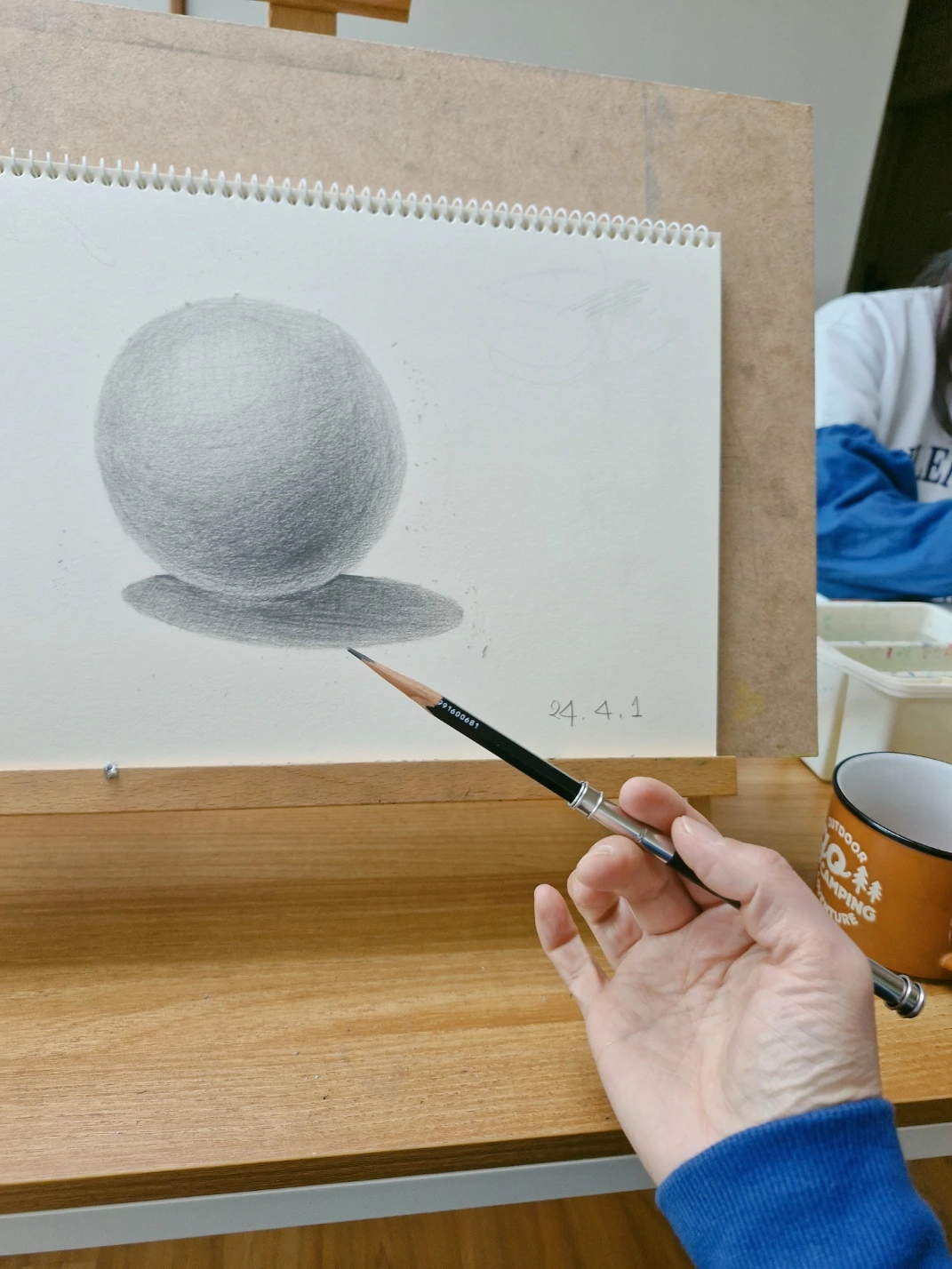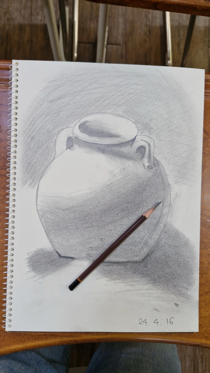 20년 만에 다시, 기대감을 잔뜩 품고 첫수업을 들었어. 역시나 선긋기부터 시키더라고, 그리고 연필하나로 명암을 선의 진하기를 단계별로 나타내는 연습도 했어. 확실히 20대때보다는 조급함이 덜해서인지 이것또한 즐거운 과정이었어.