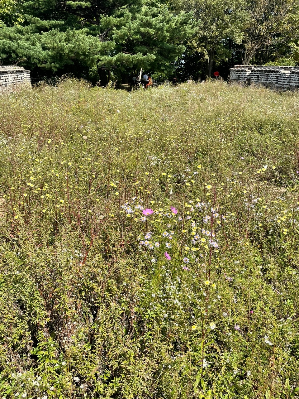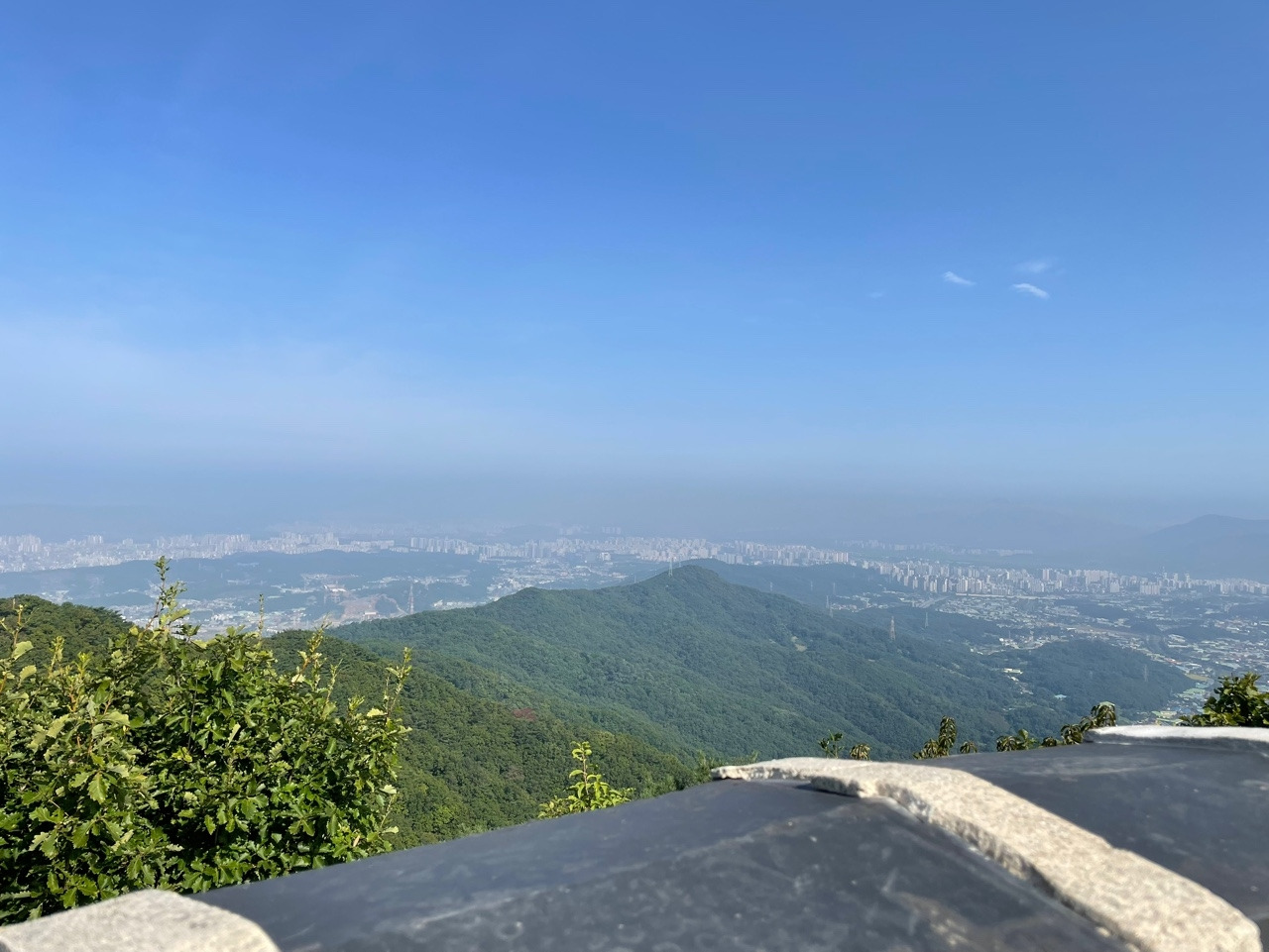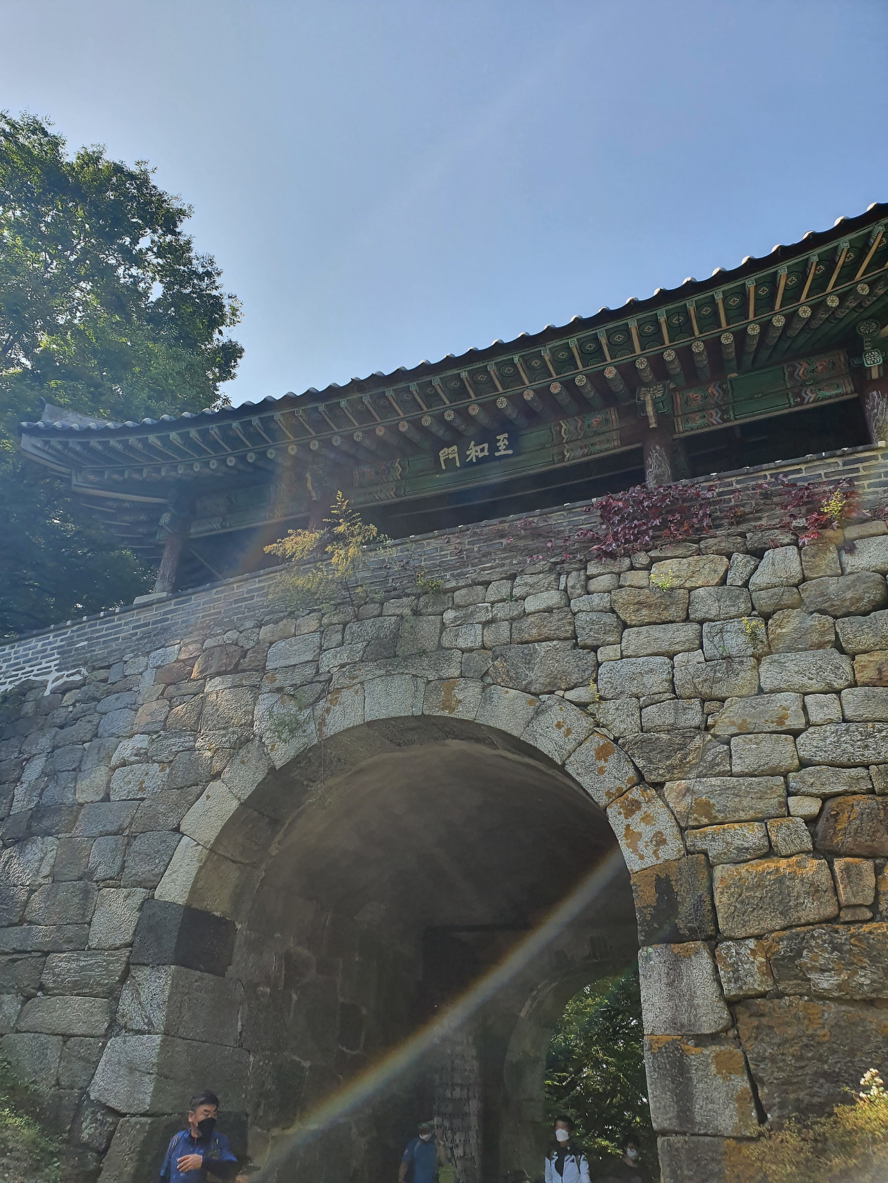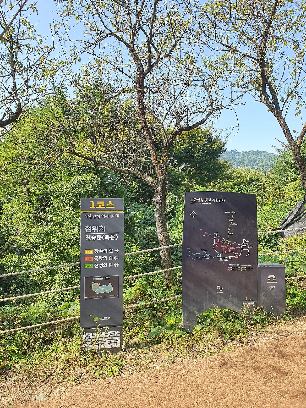 남문로터리에서 출발했더니 생각보다 경사로가 없는 편이었다. 적당한 순간에 산성 벽을 따라다니니 등산객이 많이 없는 신기한 길들을 걸을 수 있었다. 남한산성은 등산객에게 굉장히 친절한 곳이며, 저강도 운동으로 가볍게 땀 흘리며 걷기 좋은 느낌이라 강아지를 데려온 분이나 노부부가 많았다. 게다가 앉아서 쉴 수 있는 의자와 테이블이 많아서 평화롭게 산을 즐기기 좋은 완벽한 공간이었다. 아직 만리장성을 못 가봤지만 남한산성을 내려다보며 여기가 한국의 만리장성이라고 생각했다.