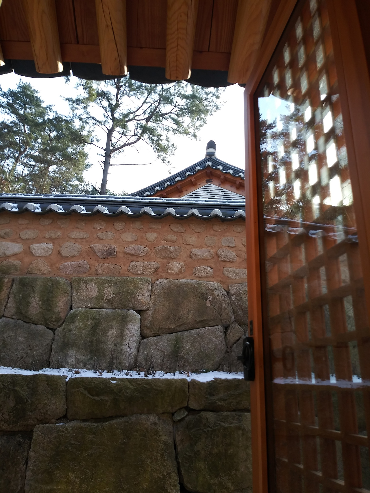소복하게 쌓여있는 북한산 자락에 자리 잡은 진관사의 함월당은 달을 품은 곳이라는 한자처럼 조용하고 운치 있는 계곡가에 자리 잡고 있어 최고의 명당자리였다. 실제로 1008년 전 고려 현종이 왕위에 오르기 전, 자신의 목숨을 구해준 진관 조사의 은혜에 보답하고자 지은 절인데 전국에서 가장 좋은 명당자리에 터를 잡았다고 한다. 안내를 듣고 보니 숙소도 더 좋아보이고 따뜻한 온돌방에서 잠이 어찌나 잘 오던지 정말 편안하게 휴식을 취할 수 있었다. 조용한 우리 방은 특히 스님이 거처하셨던 곳이라 더 정갈하고 은근한 향이 있었고 큰 창으로 바깥 풍경도 볼 수 있어 조용히 책을 읽기에 딱이었다. 일요일 아침 일찍 부처님께 절을 드리고 맛난 절밥을 먹고 한가로이 절 주변을 거닐다 스님과 다담 시간을 가졌는데 펑펑 눈까지 내리니 스님이 알려주시는 행복하게 사는 방법이 귀에 쏙쏙 들어와 나도 모르게 행복한 미소가 절로 나왔다.