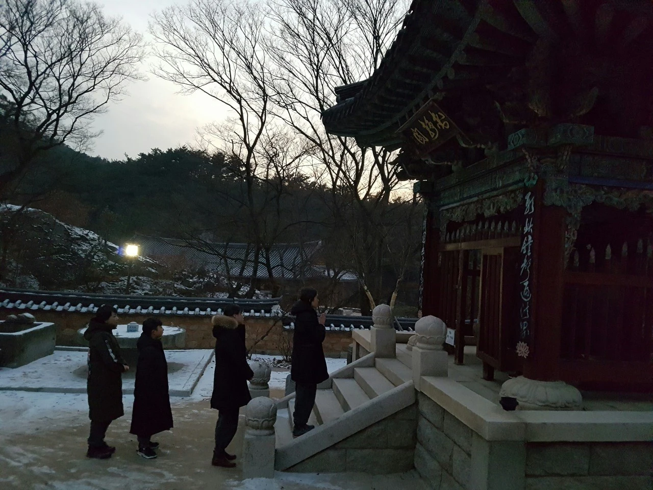 평상시 혼자서 걷기, 책 보기, 글쓰기 등의 방법은 충분히 실천하고 있지만 도시 환경을 벗어나 산속 한적한 절에서 조용히 하루를 보내고자 템플 스테이를 가게 되었다. 작년 여름, 봉선사에 갔을 때 찌는듯한 더위속에서도 백팔배를 하고 차를 마시고 공양을 하고 포행 하는 게 정말 행복해서 겨울에 한번 더 가리라 마음먹고 있었는데 며칠 전 눈이 내리니 지금이다라는 부처님의 말씀이 귀에 들리는 듯했고 역시나 가는 날 마침 눈도 한번 더 내려줘 내게는 최고의 선물 같은 시간이었다.
