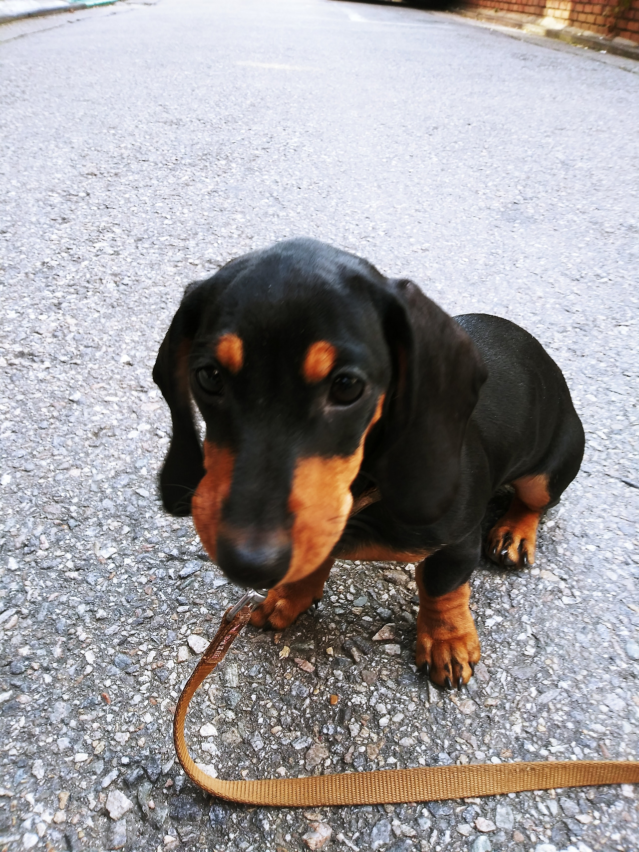 일단 비장의 무기, 간식을 정성껏 한입에 먹을 크기로 잘라 주머니에 담고 엄마견 달이 목줄을 최대한 줄여서 목줄을 채워 막내 공이 만 데리고 나갔다. 낯선 세상에 첫발을 내딛는 공이는 설레는 듯 살짝 조심스럽게 한발 한발 나아갔다. 햇볕은 따스하지만 바람이 차서 몸을 부르르 떨며 몇 발 가다 멈춰서 이리저리 둘러본다. 새삼스레 바닥에 널려있는 담배꽁초, 쓰레기 기타 등등 모든 게 내 눈에 거슬린다. 처음 밟아 보는 세상이 삭막한 콘크리트에 지저분한 동네 골목이라는 게 좀 미안했지만 어차피 우리가 사는 세계에 익숙해져야 할 터.. 난 이리 와!! 를 해가며 열심히 앞으로 전진했다. 공주님이 조금 가다 멈추고 쉬엄쉬엄 딴짓을 하는 통에 동네 한 바퀴를 도는데 20분은 족히 걸린 듯하다. 그래도 간식 먹는 재미에 이리와 하면 따라오고 한발 두발 걸어 햇살 아래 사진도 찍고 무사히 산책을 마쳤다.