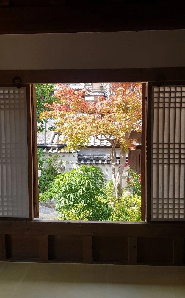 일자형 건물에 달린 툇마루, 마루 아래 댓돌, 그 앞에 작은 마당. 마당 앞에 대문 없는 황매화 울타리.