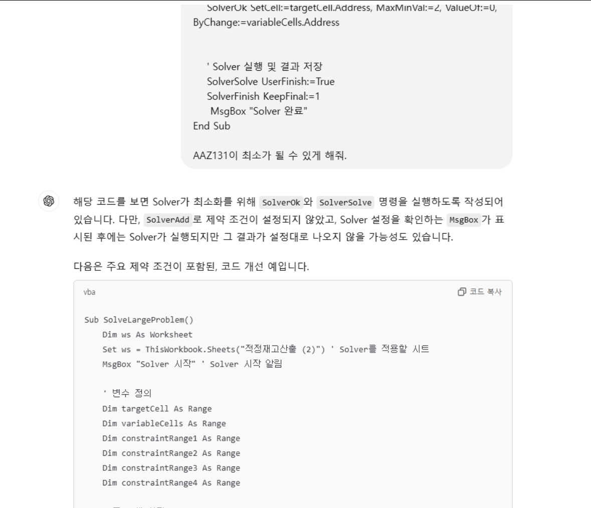 그래서 나는 GPT에게 문장 센스나, 구조화, 아이디어를 크게 기대하지는 않지만, 엑셀에서 복잡한 함수를 작성하거나, VBA코드를 작성하거나, 혹은 SQL을 작성할 때 도움을 많이 받는다.