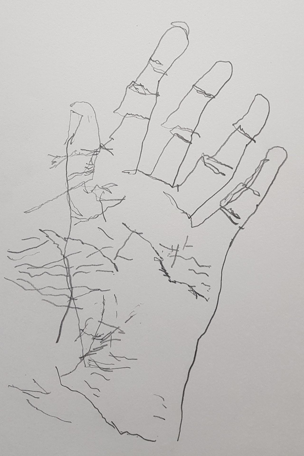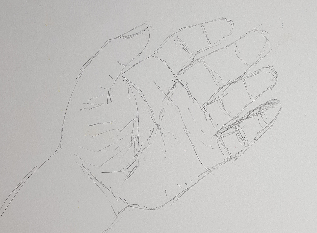 '이건 또 뭔 소린가? 어떻게 잘 되고 있는지 보지도 않으면서 그릴 수가 있지. 제대로 그릴 수 있나?' 처음에는 여러 가지 생각이 들면서 고개를 돌리고 싶은 생각이 불쑥불쑥 들었다. 시간이 지나면서 조금씩 집중하여 손에 있는 잔주름을 볼 수 있게 되었다. 40년 넘게 살면서 내 손에 있는 주름을 이렇게 오랫동안 쳐다본 것은 처음이었다.