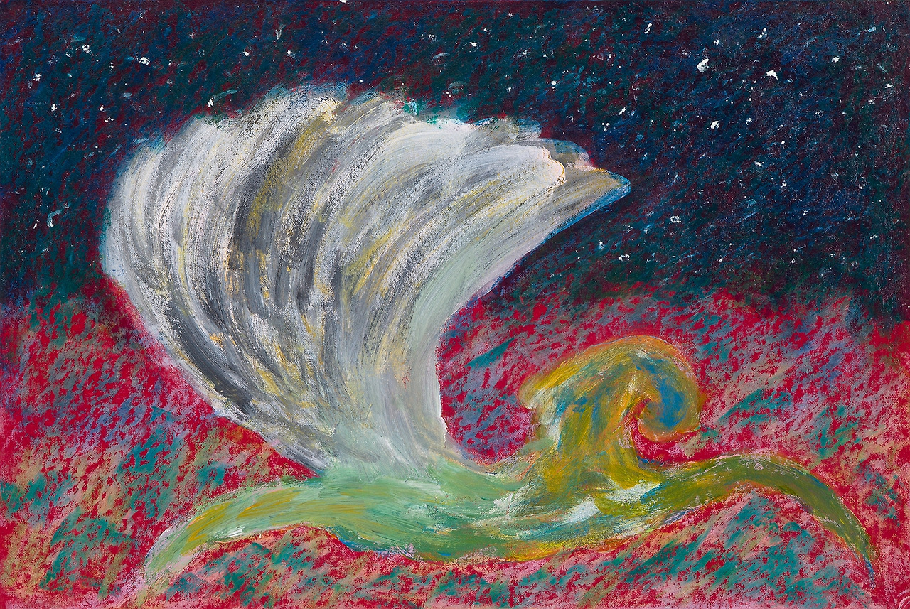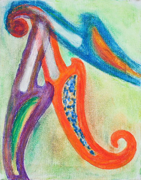 어느 날 문득 화실에 걸려있는 곡선자가 눈에 들어왔다. 곡선자를 캔버스에 올려놓고 이리저리 돌려보다 하이힐을 신은 여성의 다리가 연상됐다. 곡선자를 세 번 겹쳐 그리고 그 위에 오일 파스텔과 아크릴 물감을 칠해 완성한 작품이다. 설레는 마음을 안고 사랑하는 사람을 만나러 바삐 걸음을 재촉하는 여성을 떠올리며...