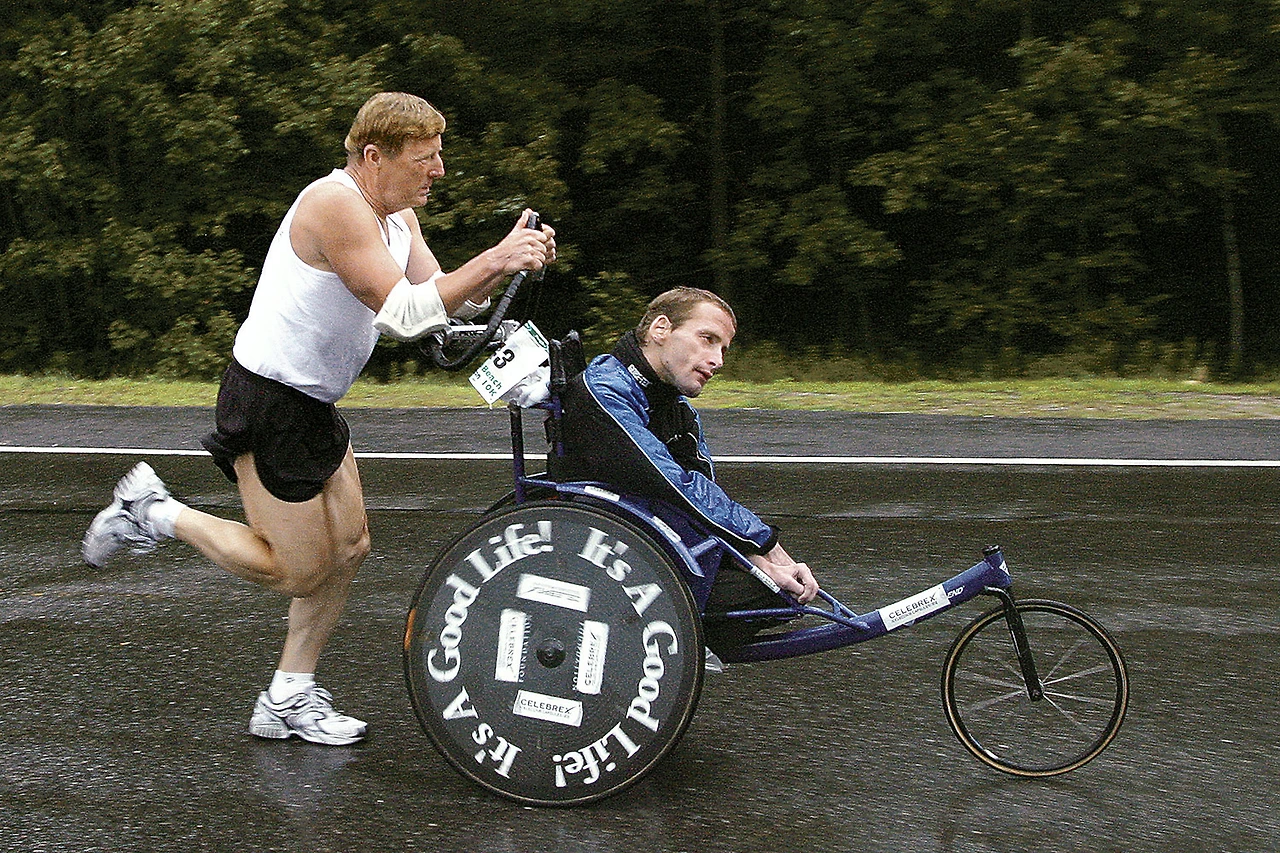 하반신 마비 농구선수의 치료비 마련을 위해 열린 8km 자선 달리기 대회를 시작으로 둘은 하나의 팀이 되어 달리기 시작했다. 첫 대회에서 맨 뒤에서 2번째로 들어온 그 둘이었지만, 완주를 마치고 릭은 아버지에게 처음으로 장애가 사라진 거 같다는 이야기를 건넸다. 이 말은 한 아버지로 하여금 완전히 새로운 인생을 살게 만들었다. 보스턴 마라톤이라는 큰 대회에서 첫 완주에 성공하고, 완주하는 것이 점차 익숙해지자, 이 부자는 철인 3종 경기에 도전했다. 아들을 보트에 태워서 자신의 몸과 묶은 다음 수영 훈련을 시작했고, 자전거에 아들을 연결시켜 페달을 밟기 시작한 것이다.