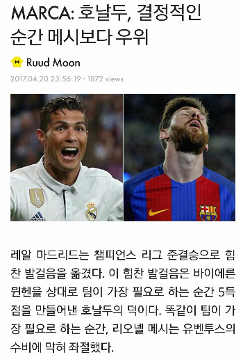 또 다른 예로, '포스터' 가 있다. 다음은 본인이 최근 취미로 번역했던 해외축구 칼럼(기사)이다. 스페인 언론 MARCA의 글로, 원본은 바로 아래 링크에서 볼 수 있다.