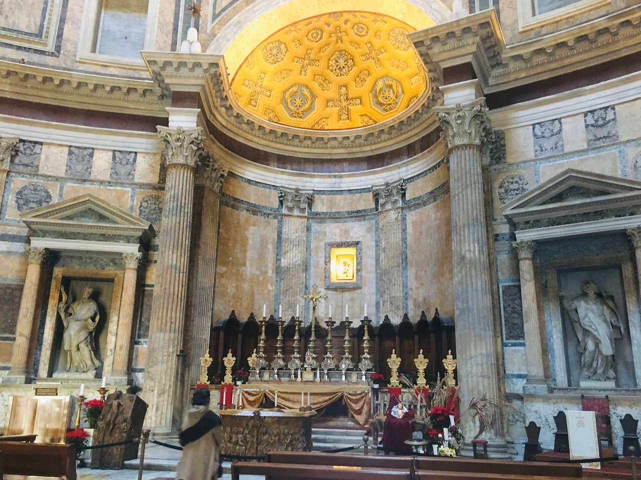 쓰고 있던 모자를 벗고, 경건한 마음으로 입장했다. 모두가 엄숙한 분위기에서 판테온 내부를 둘러보기도 하며, 기도를 드리기도 했다. 판테온의 천장을 보자마자 왜 이곳이 라파엘로가 가장 좋아했던 곳임을 느낄 수 있었다. 이렇게 높고 아름다운 천장을 바라보니 어지러울 지경이었다. 바티칸의 화려한 건물과는 다른, 판테온만의 매력을 느끼기에 충분했다.