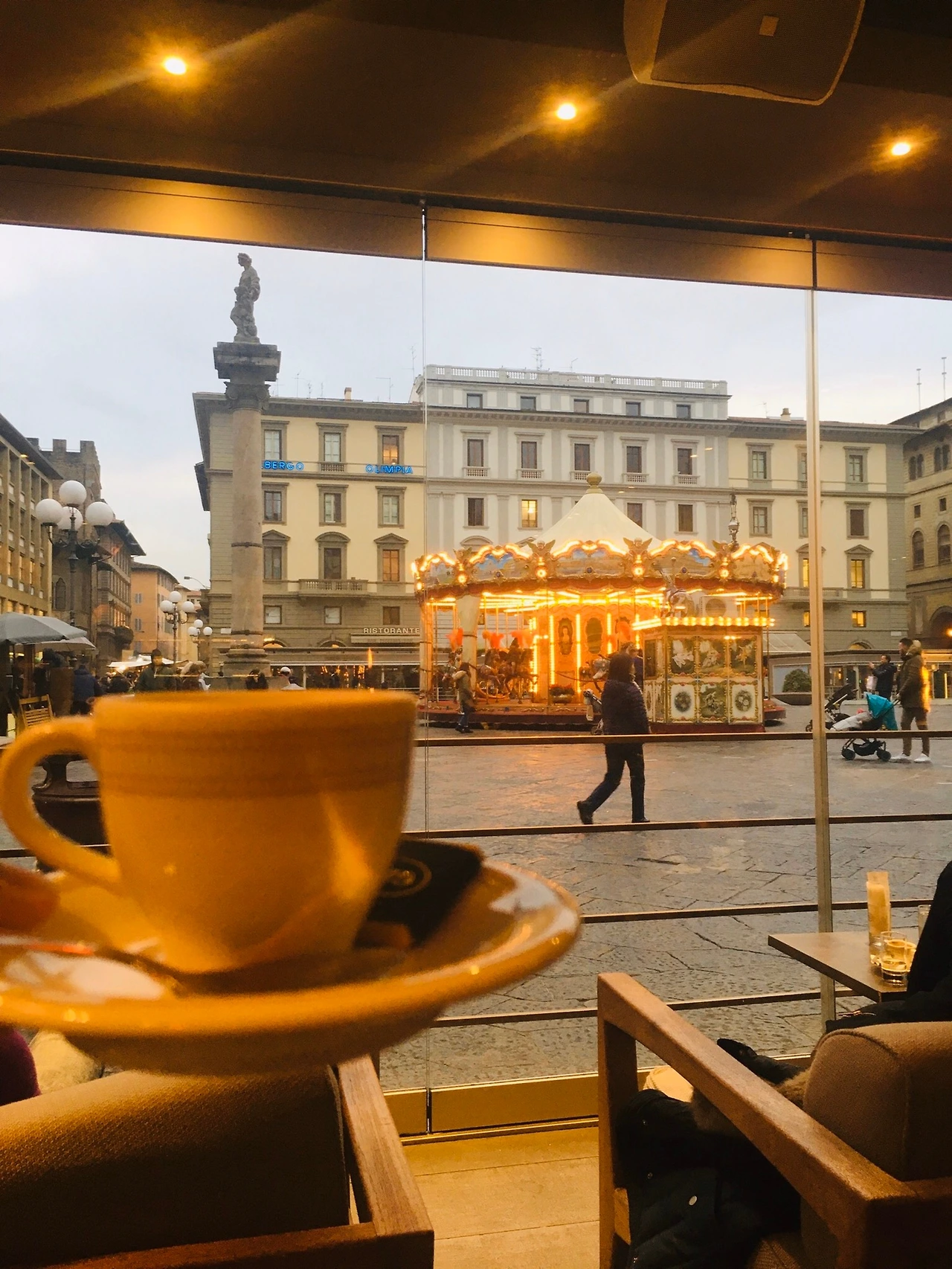 피렌체에서의 모든(해야 하는) 일정을 치르고 나니 마음이 굉장히 편안했다. 공화국 광장에서 저물어 가는 해와 돌아가는 회전목마의 화려한 조명을 잠시 동안 아무 말없이 바라보았다. 아무런 생각이나 마음이 없어도 충분했던 그 순간이 그리워진다. 피렌체에서 보낸 시간은 에스프레소처럼 짧지만, 강렬한 맛과 그 깊은 여운은 진한 커피 내음처럼 오랫동안 남아있는 것 같다.
