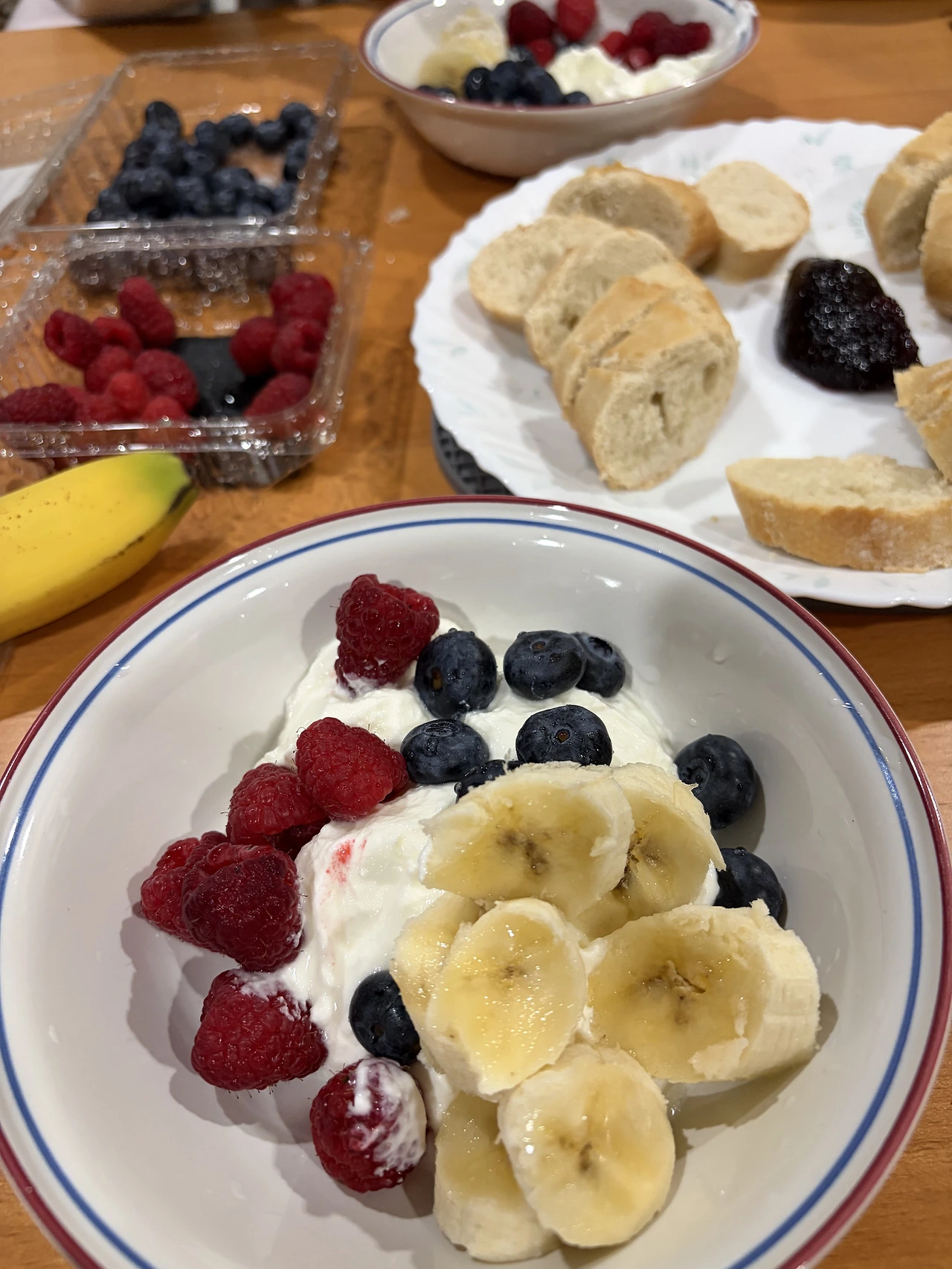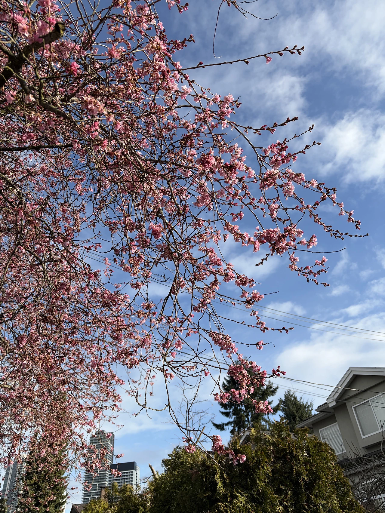 이날 아침엔 전날 사둔 요거트에 라즈베리와 블루베리를 먹고 동네 수영장으로 갔다. 가는 길에는 벚나무에 꽃이 피어 있었고, 이제야 내가 다른 세계에 있다는 것이 조금씩 실감이 났다.