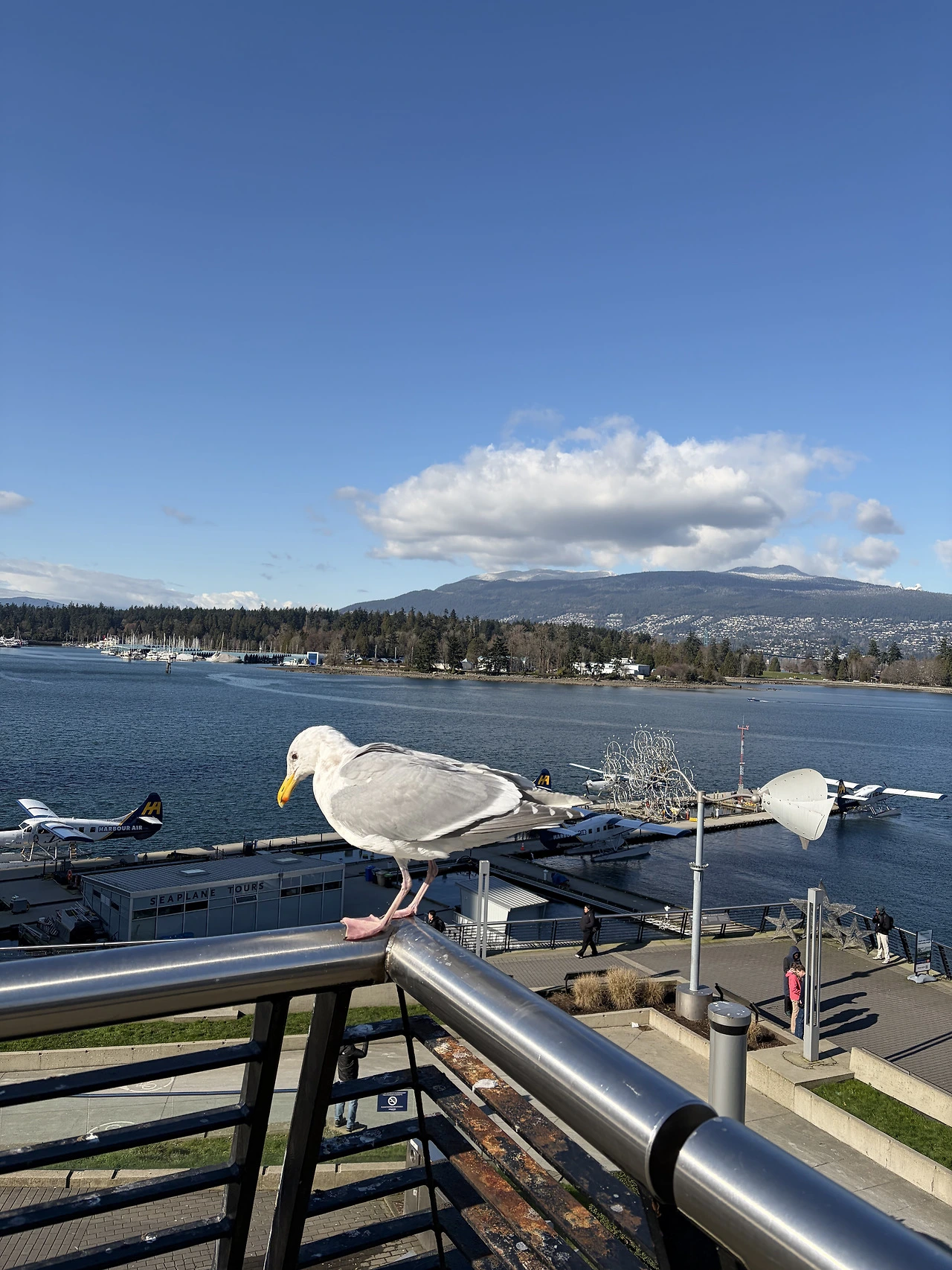 캐나다 플레이스를 지나 스탠리 파크를 걷기로 했다. 원래는 자전거를 타려고 했는데 밴쿠버의 다소 쌀쌀한 날씨로 인해 산책으로 만족하기로 했다. 이곳에 오니 청명한 하늘과 맑은 공기를 더욱 만끽할 수 있었다. 밴쿠버를 떠올리면 아마도 이런 날씨와 풍경을 제일 먼저 기억할 것 같다. 스탠리 파크에서는 하네스나 목줄 없이 자유롭게 뛰어노는 공간도 있었고, 하늘을 나는 갈매기도 사람 근처로 겁 없이 다가오곤 했다.