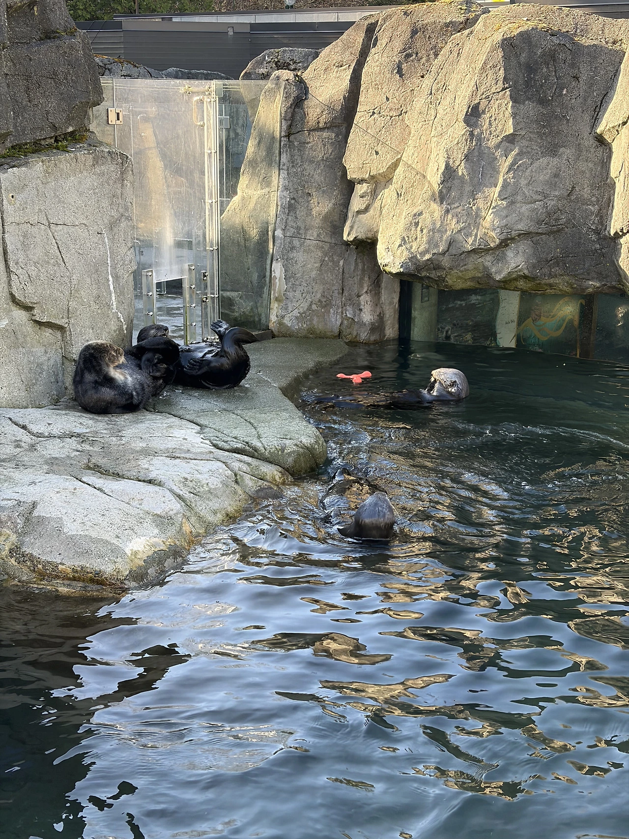 다른 해양 친구들과도 인사를 나누고 마지막으로 가기 전에 해달과 다시 한번 더 시간을 보냈다. 해달 친구들이 헤엄치고 노는 사랑스러운 모습들을 한동안 눈과 마음에 가득 담았다. 생긴 것도, 하는 짓도 사랑스러운 그들을 바라보니 한국에서 쌓인 슬픔과 스트레스가 날아가는 기분이었다. 이곳에서 보낸 시간 속에선 고맙게도 부작용의 욱신거림은 날 찾아오지 않았다. 게다가 벅찬 슬픔이나 우울감도 없었다. 해가 조금씩 저물어가자 공기가 점차 차가워지는 것이 느껴졌다. 그리고 나는 해달친구들에게 작별 인사를 하고 나왔다.