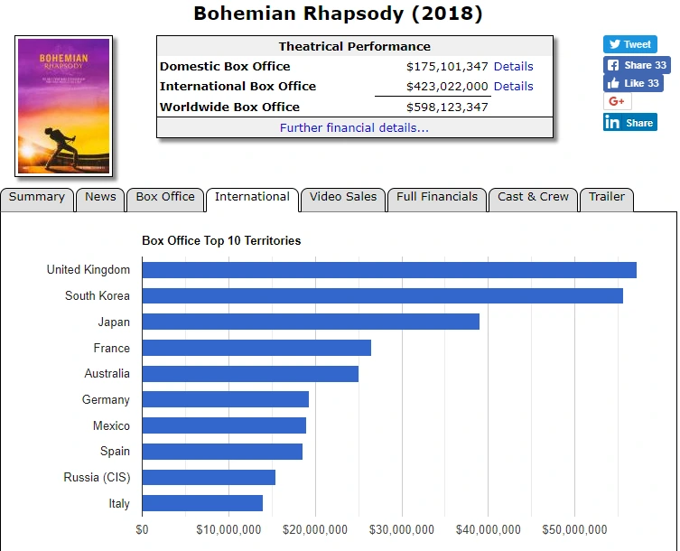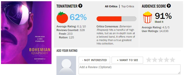 평론가들과는 달리 대중들은 영화에 열광했고, 퀸망진창 라이프에 이르게 된 사람들이 넘쳐나고 있다. ‘보헤미안 랩소디’(730만 명)는 12월 13일 기준, ‘신과함께-인과 연’(1227만 명)과 ‘어벤저스: 인피니티 워’(1121만 명)에 이어 올해 우리나라에서 흥행한 개봉작 TOP3에 등극했다. 북미에서는 음악 전기 영화 중 역대 흥행 1위의 성적이다. 사람들은 저마다의 이유로 뜨겁게 반응하고 있다.