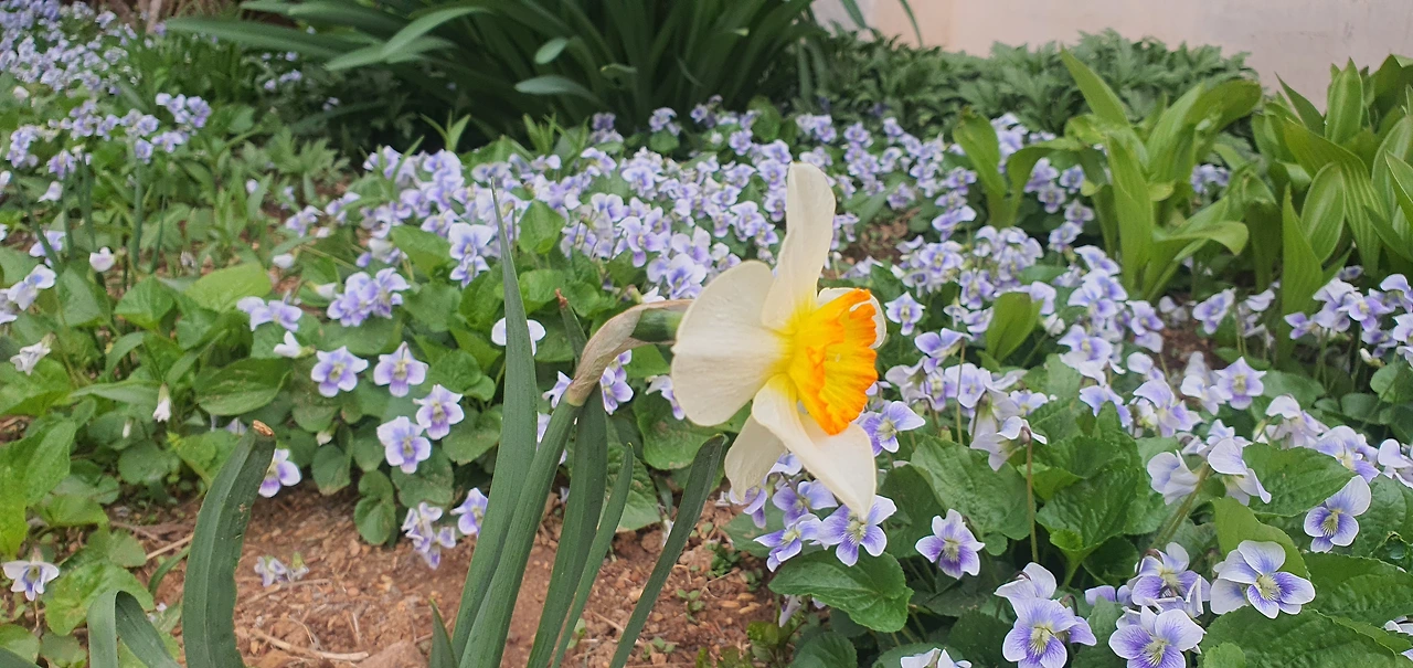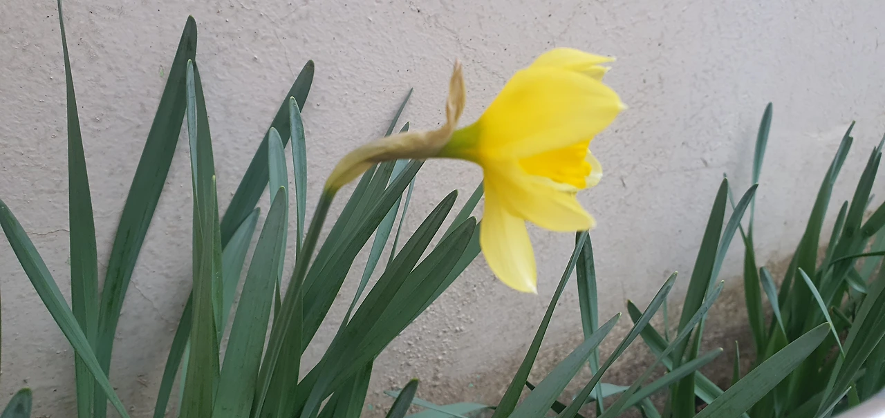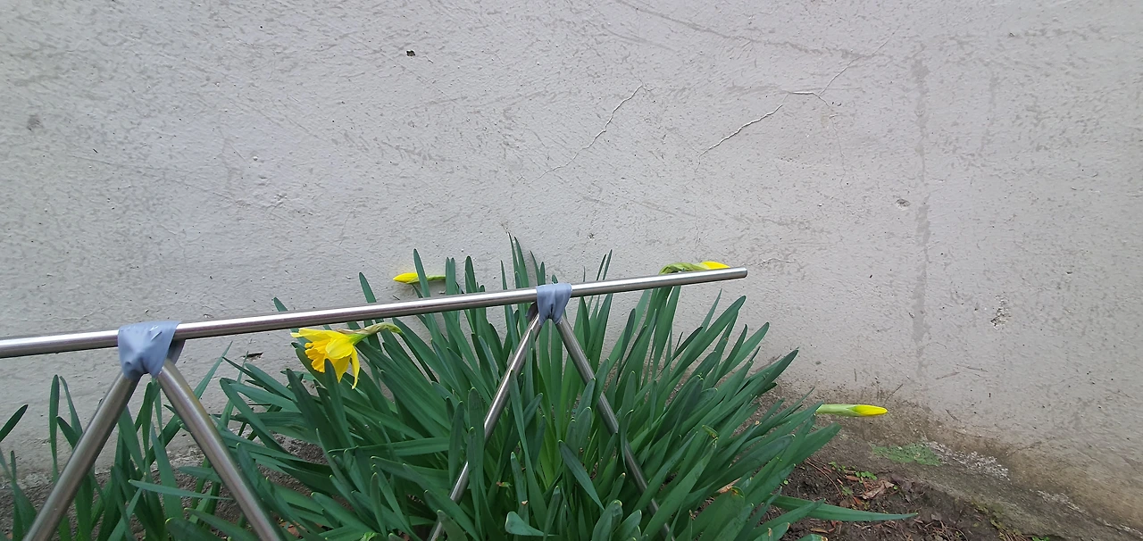 아파트 화단에 수선화를 줄 맞혀 심어놓았다.