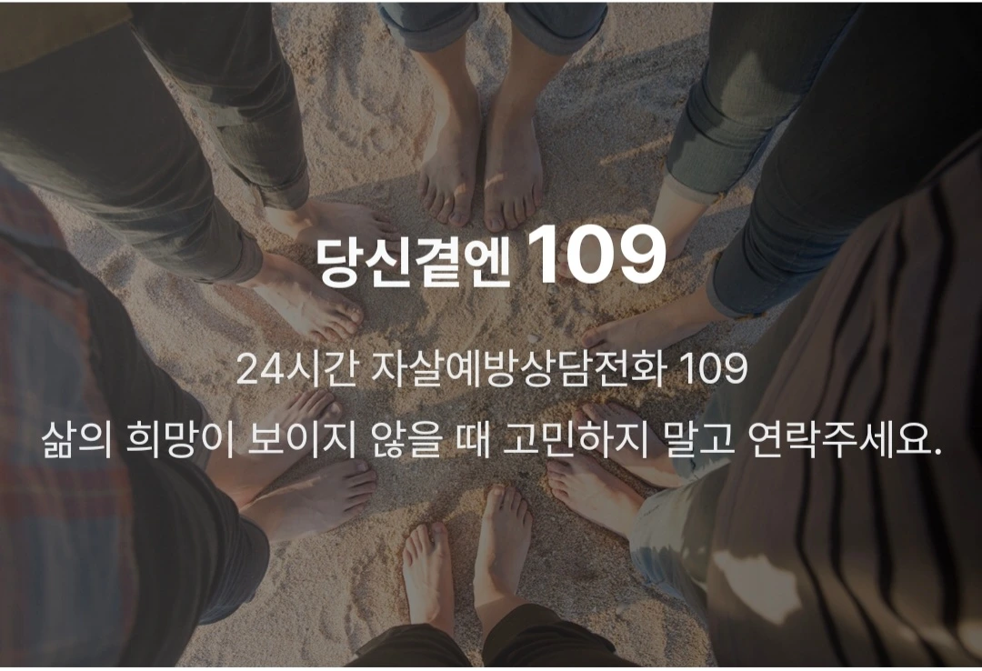 '자살예방 상담전화' 2024년부터 '129'에서 '109'로 전화번호가 변경이 되었네요.