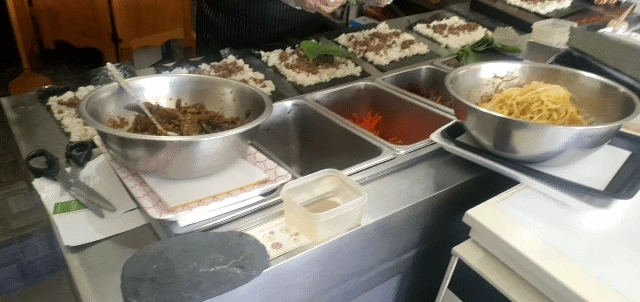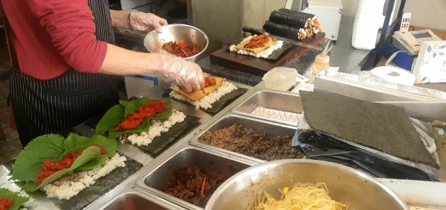 "난 김밥에 재료를 넣으면서 내가 만족해야 김밥을 돌돌 마는데 가끔은 손님들이 우리 김밥이 짜데. 손님은 어때?"