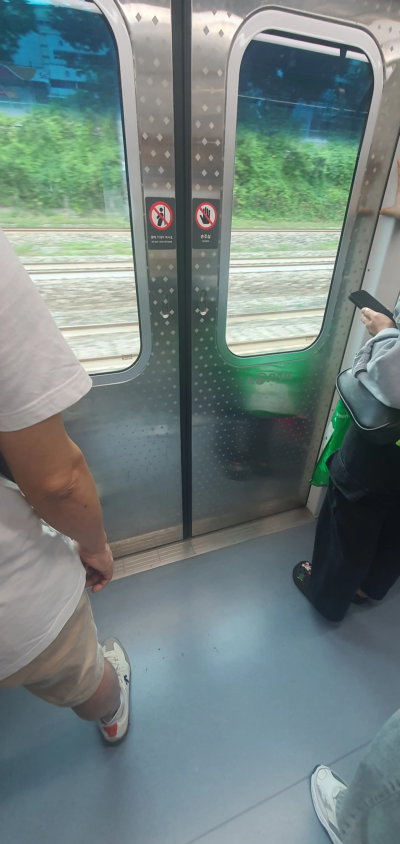 이들은 좌석 앞이 아닌 출입구에 자리 잡는다.