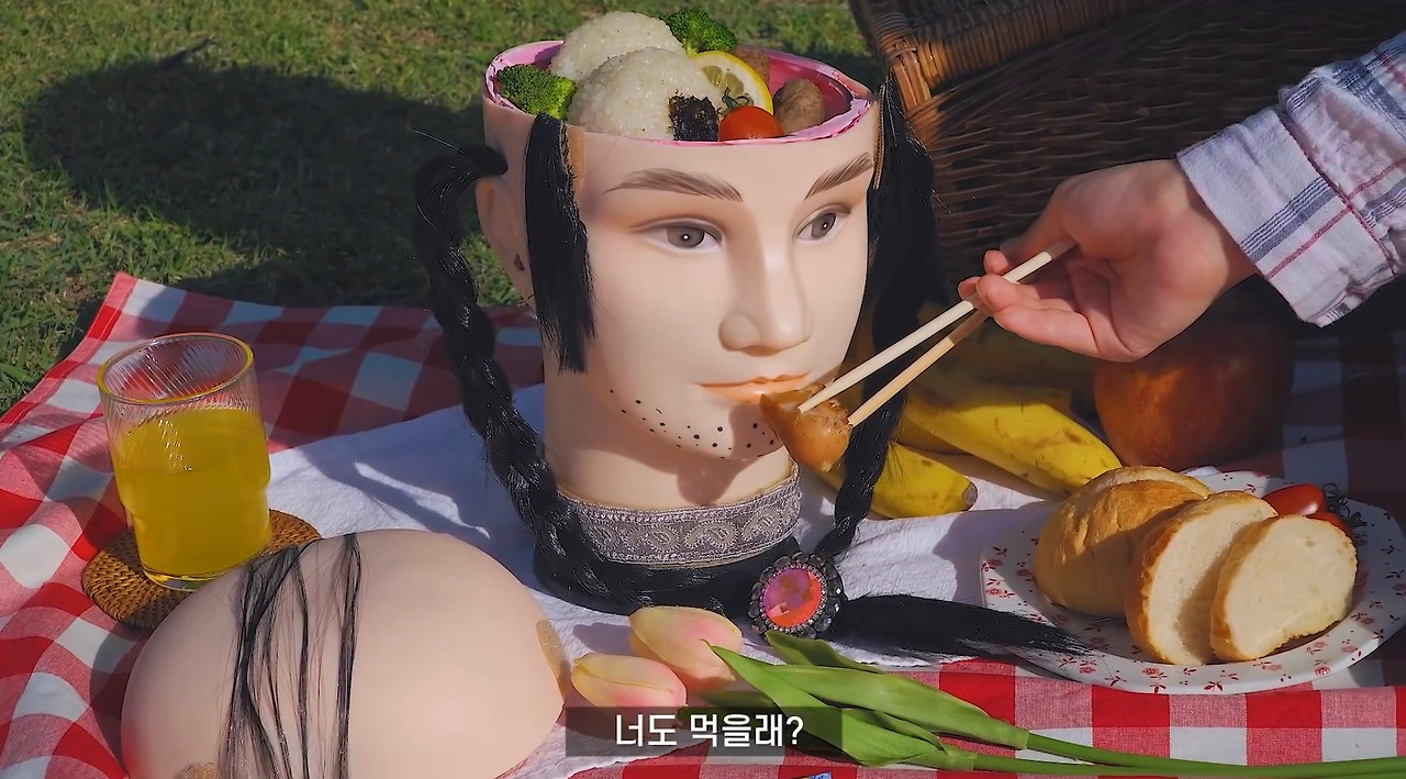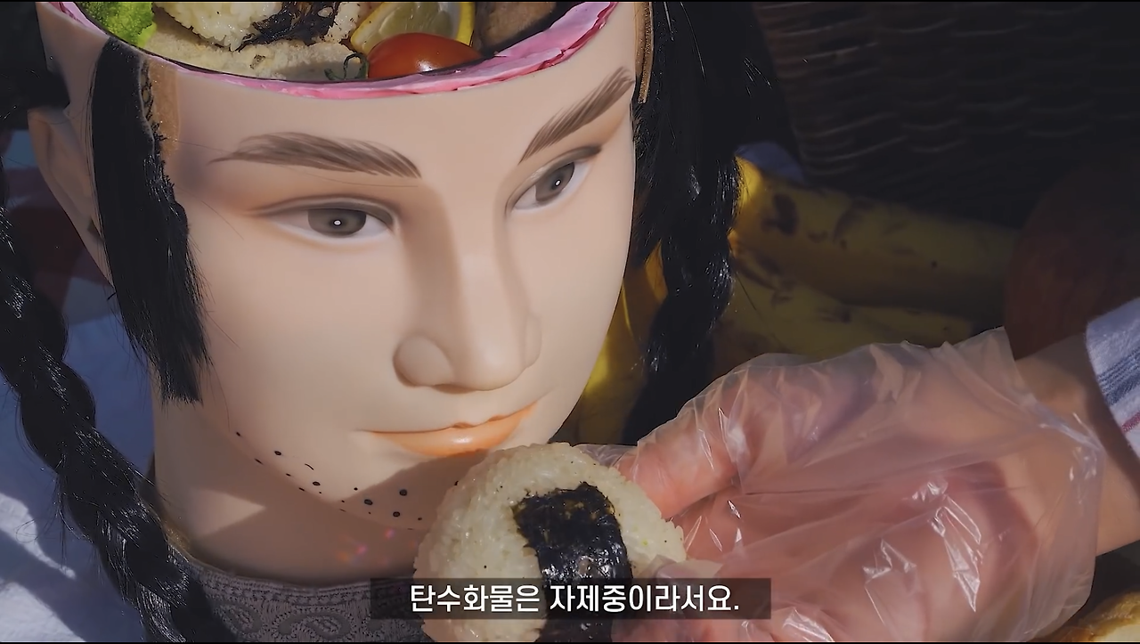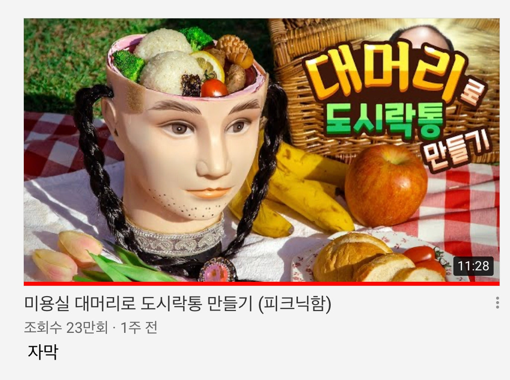 미용실에서 버리는 머리모형을 가져다가 도시락통을 만들었고요.