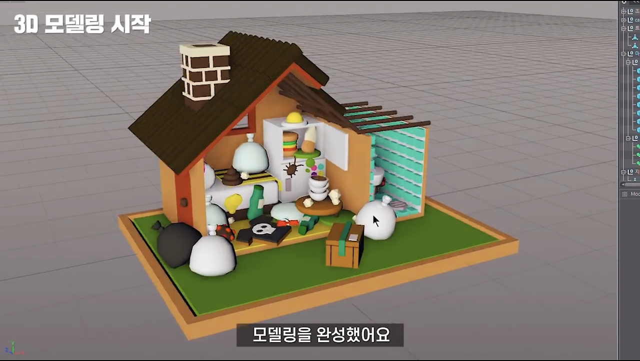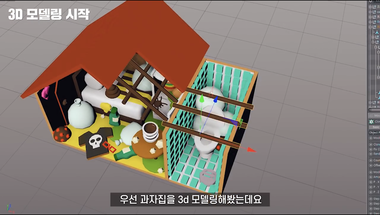 쓰레기 과자집을 만드는데 동원된 3D 모델링입니다.