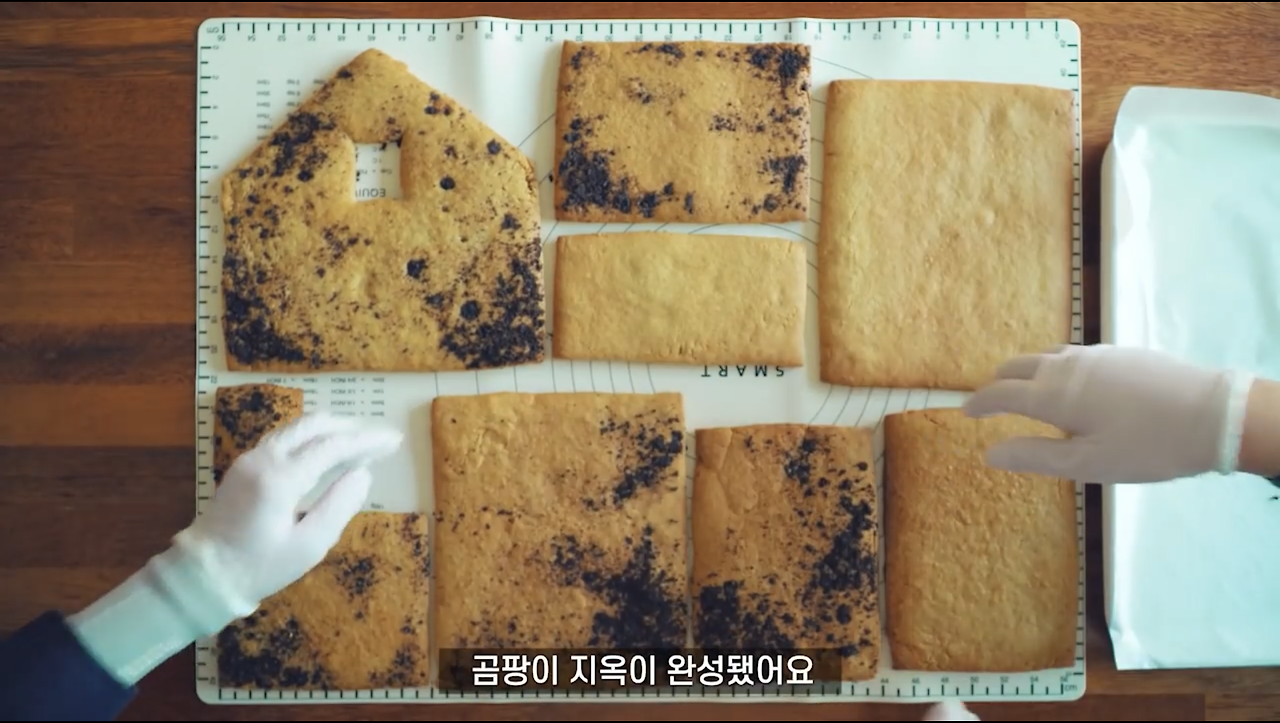 설계도면을 출력해서 크기를 일정하게 맞추어 과자집 뼈대를 완성하고,