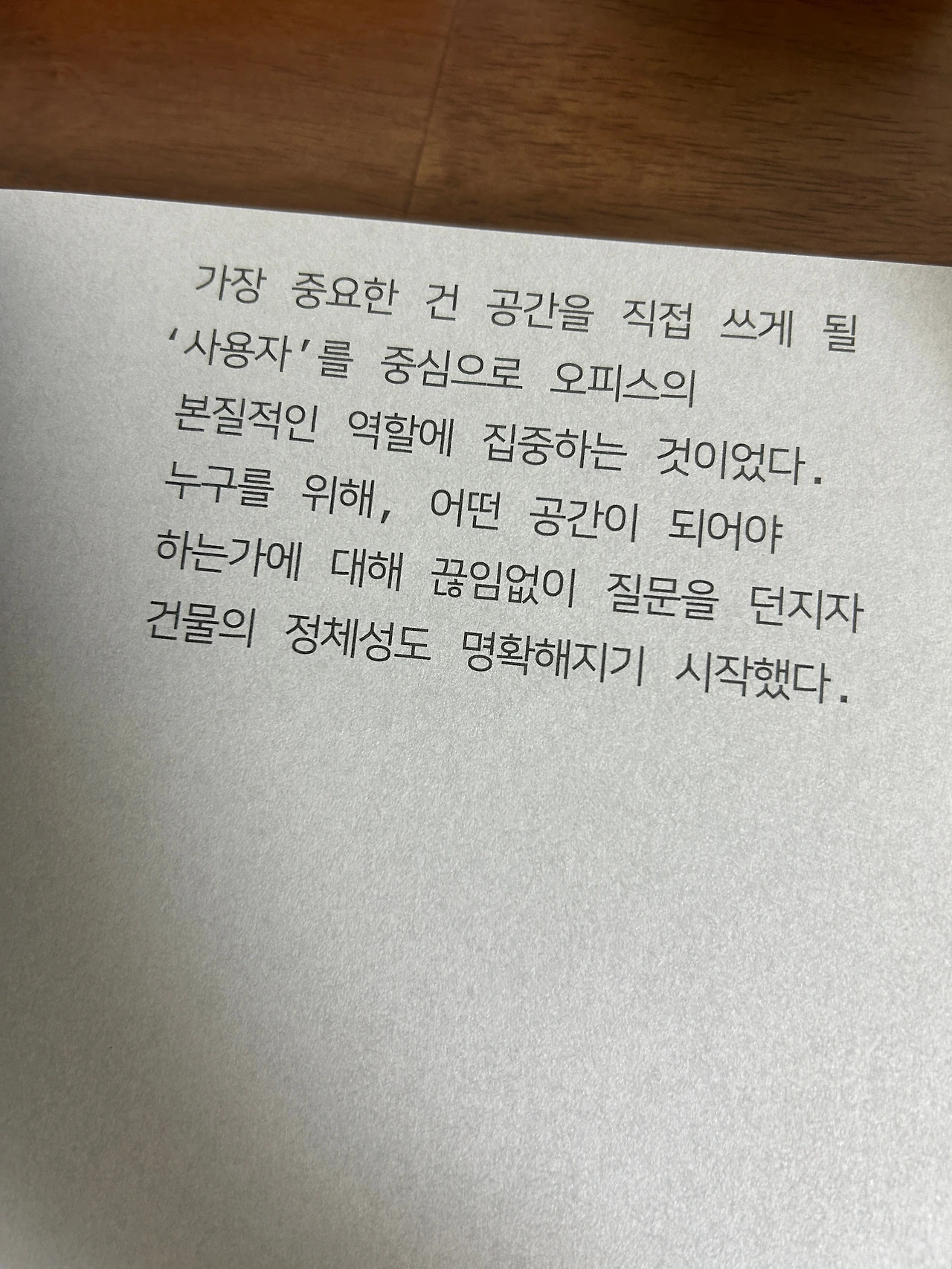 그런데 네이버, 그날의 북토크 이후로 달라졌다. 내가 만난 세 사람의 얼굴을 포함해서 서비스 뒷단에서 일하는 사람들이 자연스럽게 그려졌다. 각자의 책상에서 골몰하며 일하는 사람들의 얼굴이 떠올랐다. 직원들이 사용하는 사옥을 만들면서 이 정도까지 고민했다는 건? 반대로 사용자들을 위해서라면 더 넓고 깊은 고민을 마다하지 않는다는 의미가 된다.