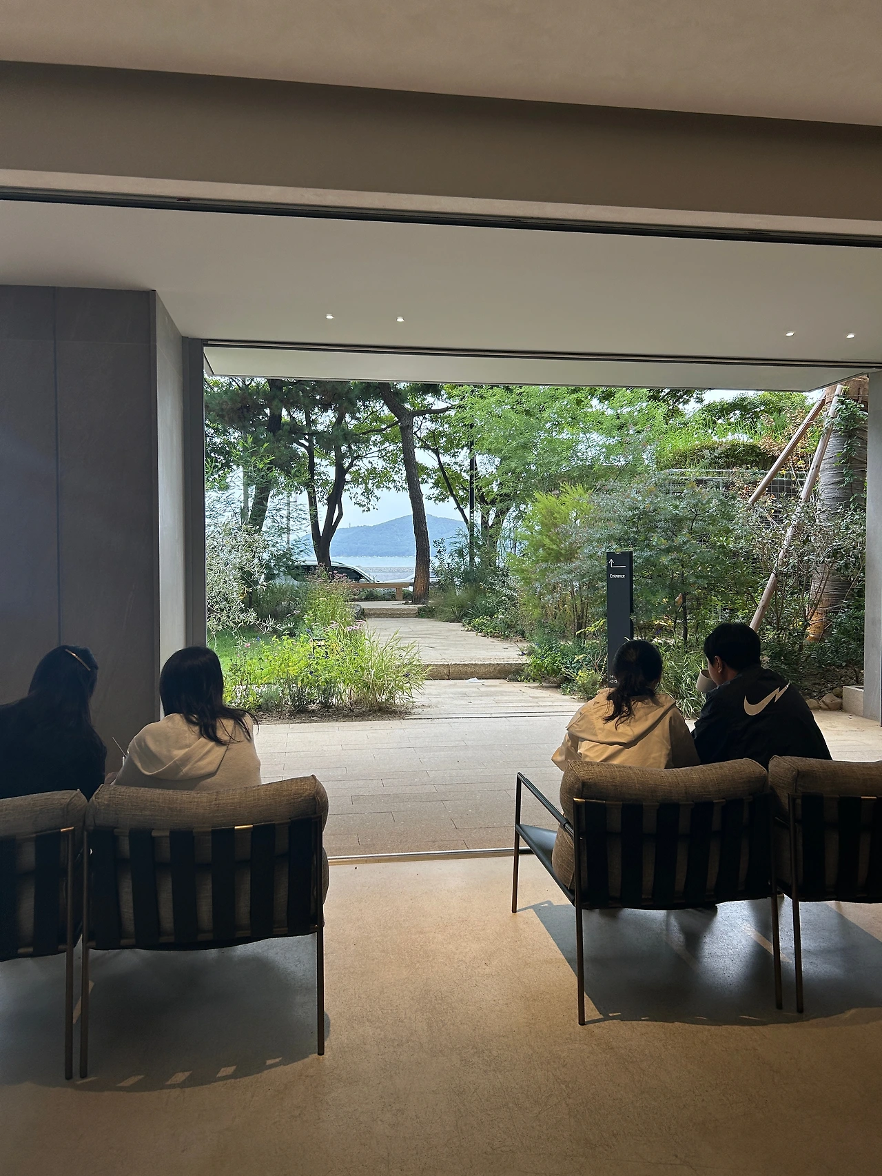 알고 보니 이 공간의 컨셉은 '모두의 거실'. 거실에 앉아 창을 바라보는 것처럼 편안하고 안락한 무드로 마린시티점을 설계했다고 하더라. 삭막한 도시와는 다른 초록색 정원, 저 너머 푸른 바다를 바라보는 맛이 과연 좋았다. 그런데 커피를 주문하려고 카운터로 향했는데, 문제가 생겼다.