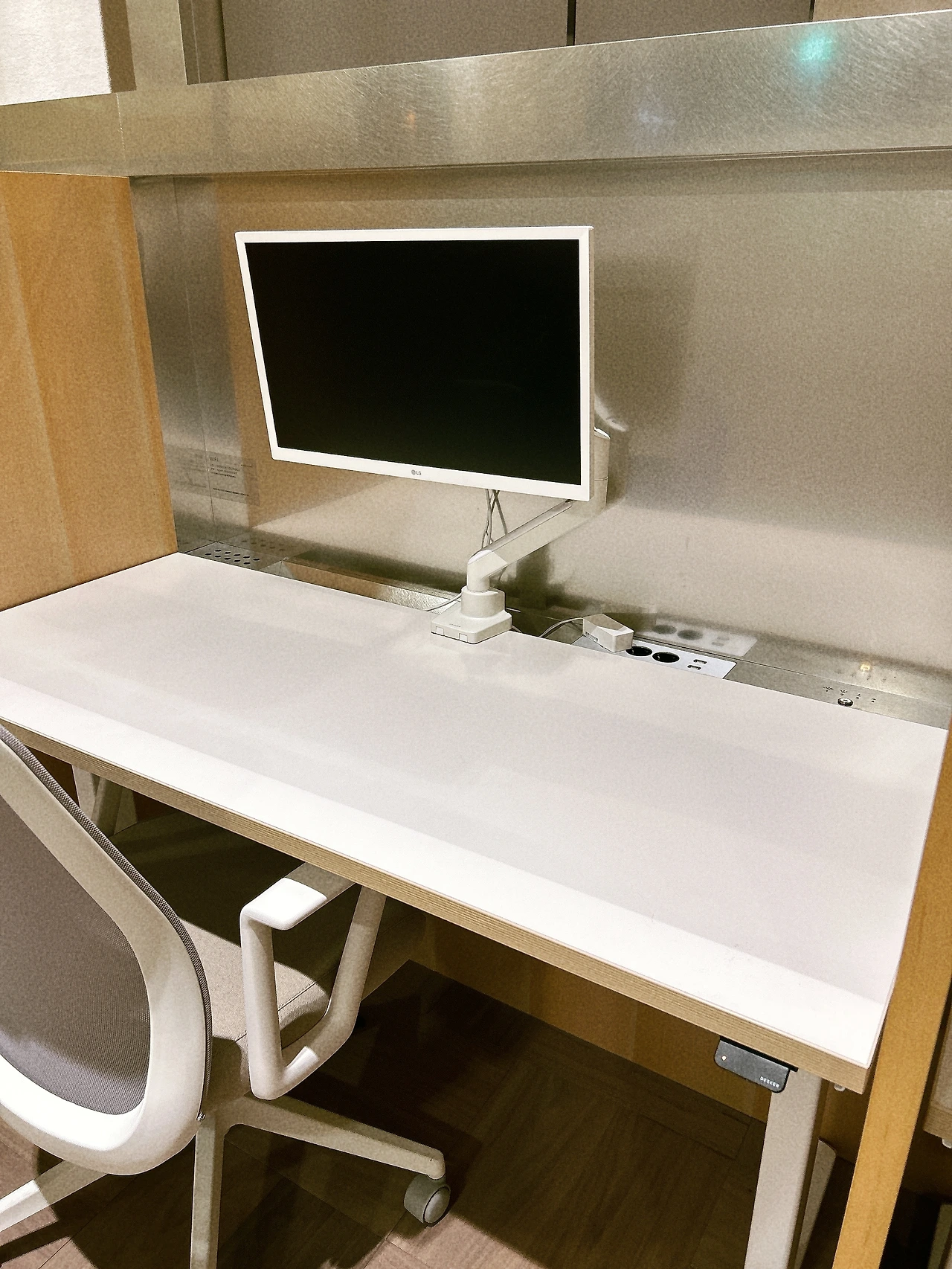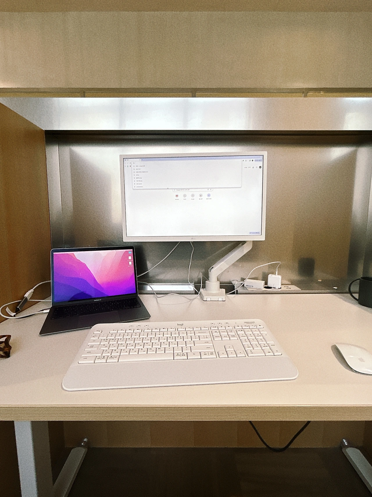 남자친구를 데려간 두 번째 방문에선 모션데스크에 앉았다. 각자의 책상에 자리를 잡고 앉아서 6-8 시간 동안 서로 가져온 일을 했다. 나랑 남자친구의 키 차이는 약 40cm 정도인데, 둘 다 평균치와 멀찍이 떨어진 정규분포 바깥의 사람들이다. 내겐 보통의 책상이 좀 높아서, 오빠는 너무 낮아서 평생 불편한 점을 느끼면서 살았다.