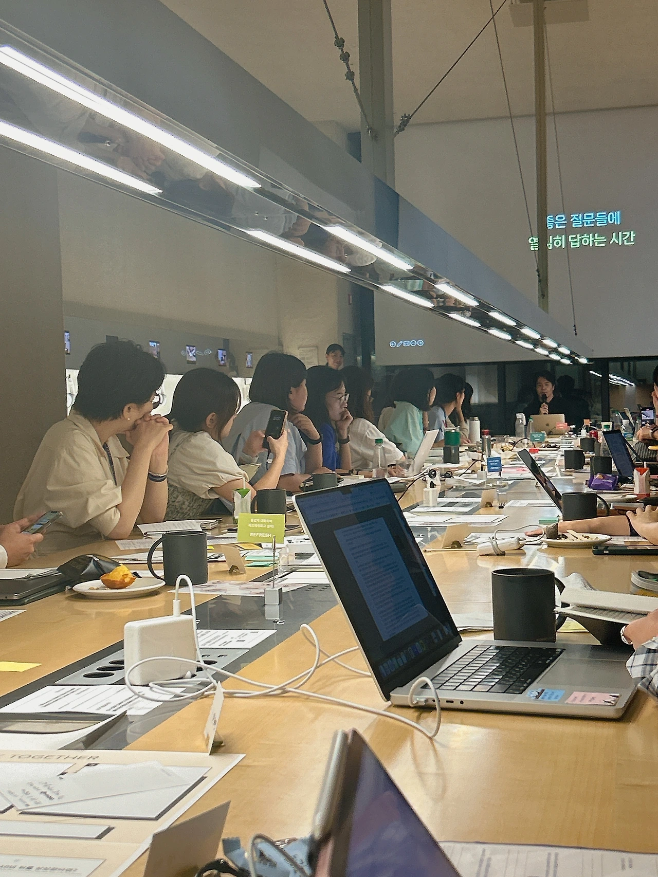 특히 여기서 처음 만난 사람들과 팀으로 묶여서 4시간 동안 함께 공부하고 강연을 들었는데, (강연 주제에 관심 있는 사람들만 모여서 그런지) 확실히 나와 비슷한 주제로 고민하고 계신 분들이었다. 끝나고 난 뒤엔 서로 인스타그램 아이디를 교환하고 팔로우까지 신나게 맺었다.