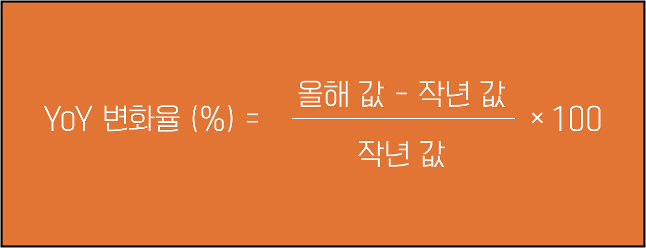 YoY는 매출, 고객수, 시장점유율 등등 장기적인 관점에서 성장을 평가하거나 비교할 때 유용하다. 연도 간 비교가 필요할 경우에는 아래 표를 기억해보자.