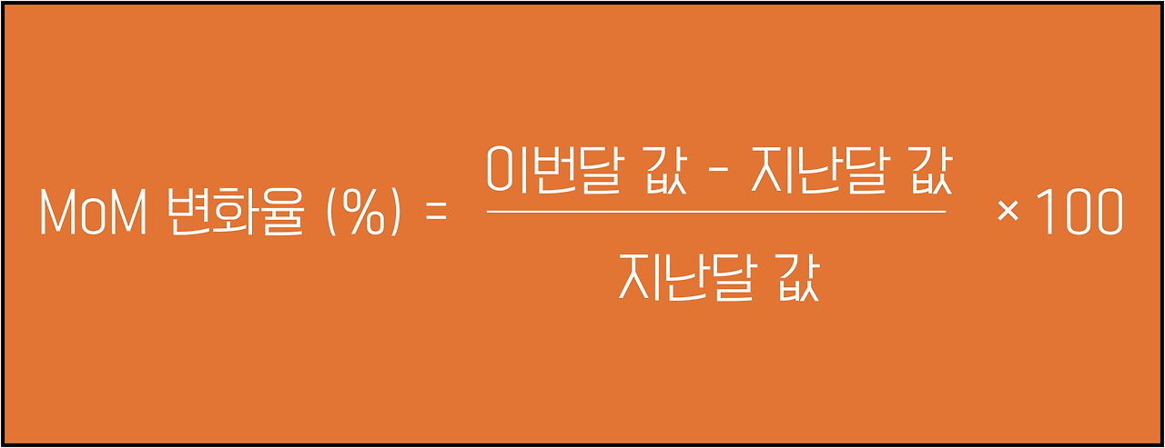 그렇다면 MoM는 무엇일까? 그렇다. 지난달 대비 이번 달의 변화를 의미한다. Month-over-Month의 약자로, 한 달 단위로 변화율을 비교할 때 유용하게 쓰인다.