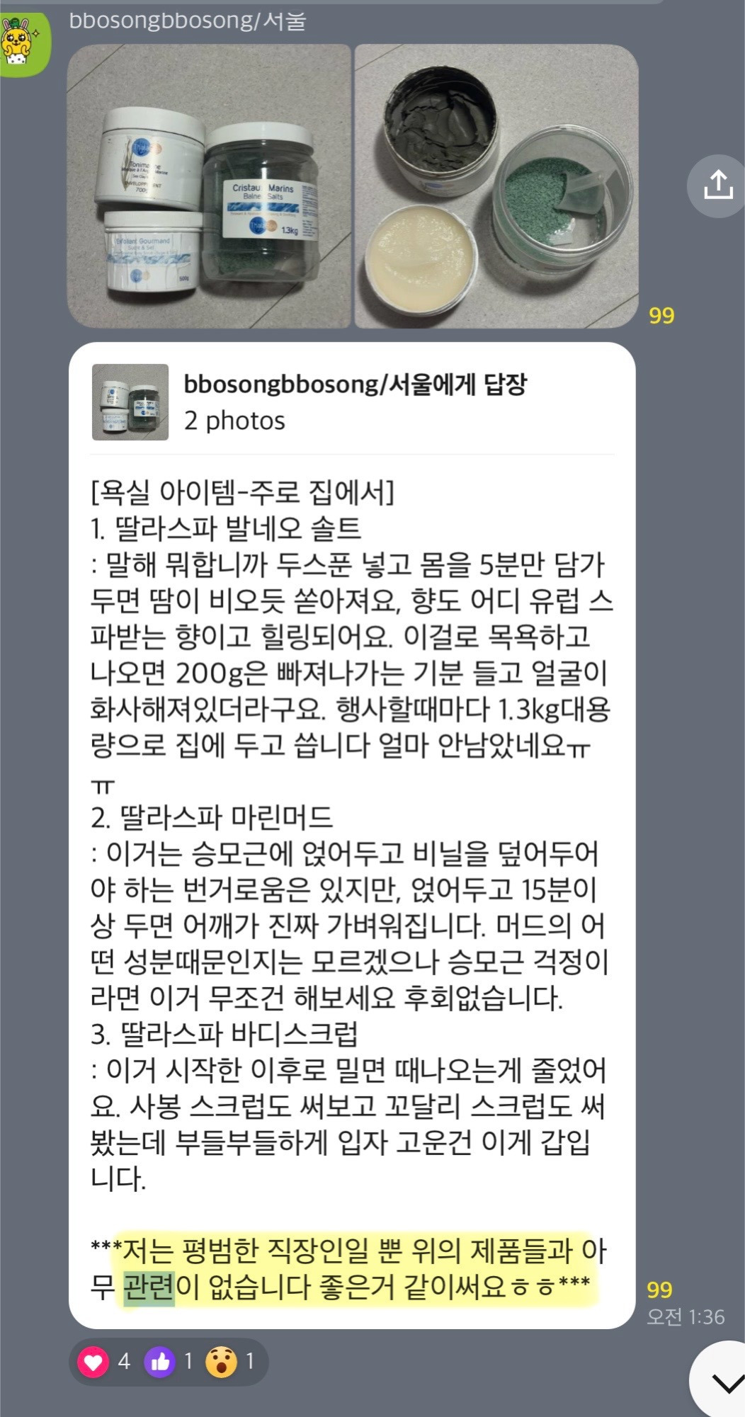 한 사우나 관련 커뮤니티에서 있었던 일이다. 자신만의 사우나 애장템을 멤버들이 소개하는 자리에서, 사람들이 입을 모아 이렇게 말하는 것이다.
