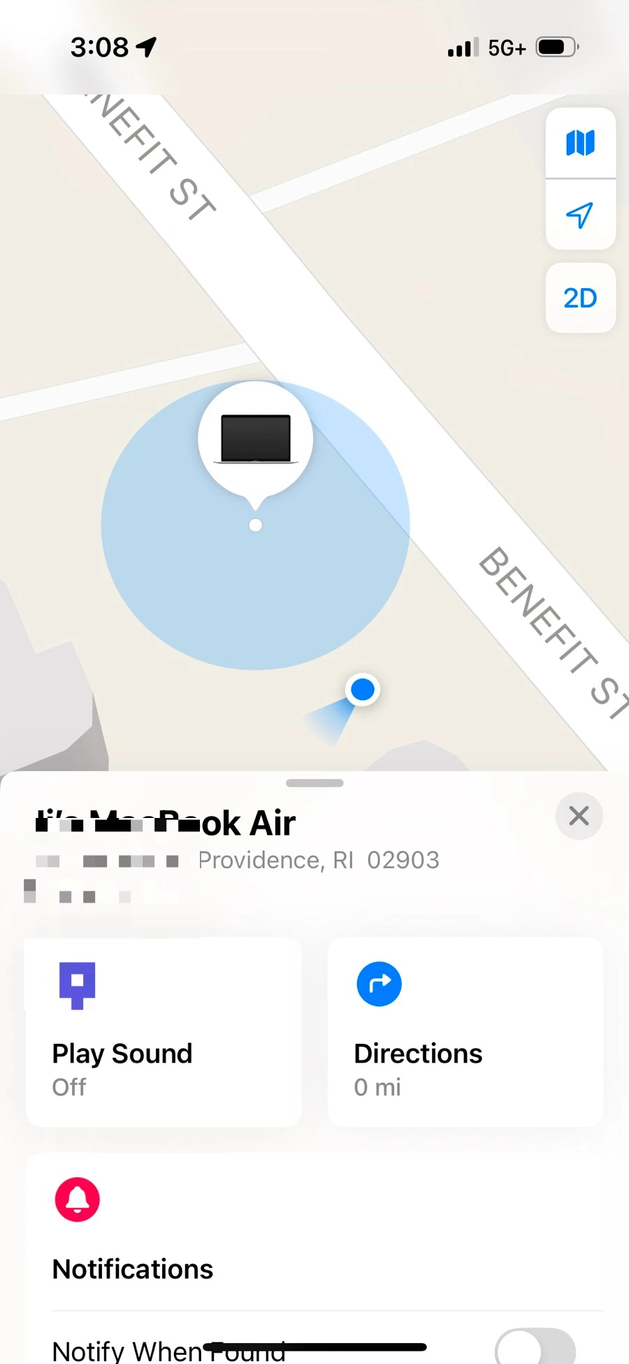 서둘러 애플폰에 있는 '나의 기기 찾기'에서 맥북의 위치를 확인했다.