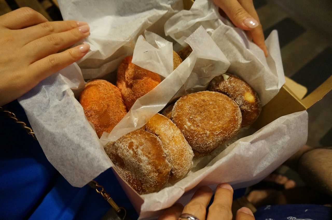 그곳의 도넛은 우리나라 팥 도넛처럼 생긴 통통하게 튀긴 도넛 안에 여러 가지 맛의 크림이 들어있고, 겉에는 설탕이 살짝 물었는데, 한 박스만 사가지고 온 것이 아쉬울 만큼 금방 먹어버렸었다.
