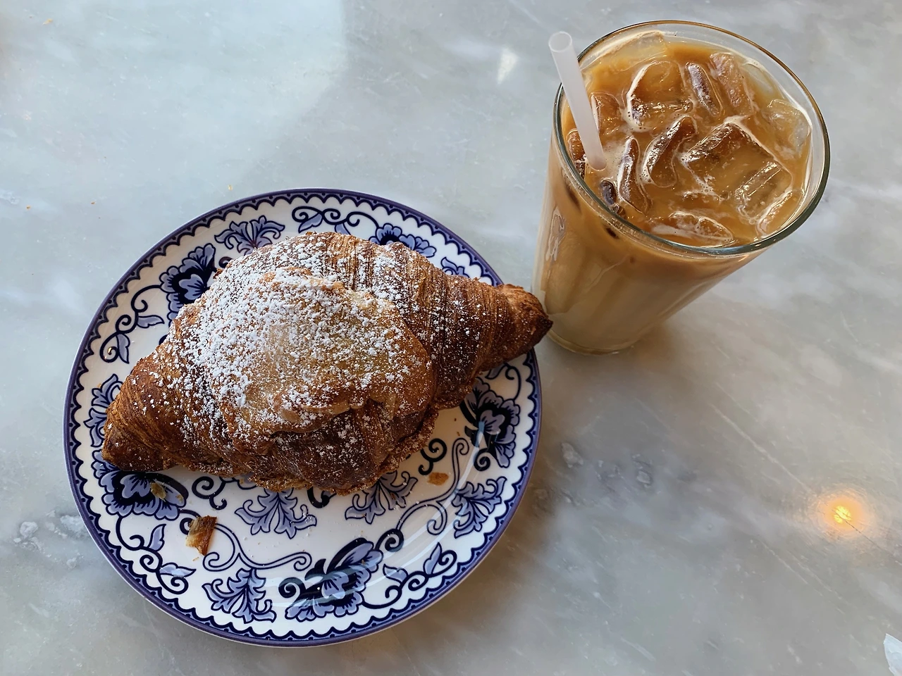 이번에는 오후라서 좀 달달한 것이 당겨서 아몬드 크루아상과 아이스 라테를 주문했다.