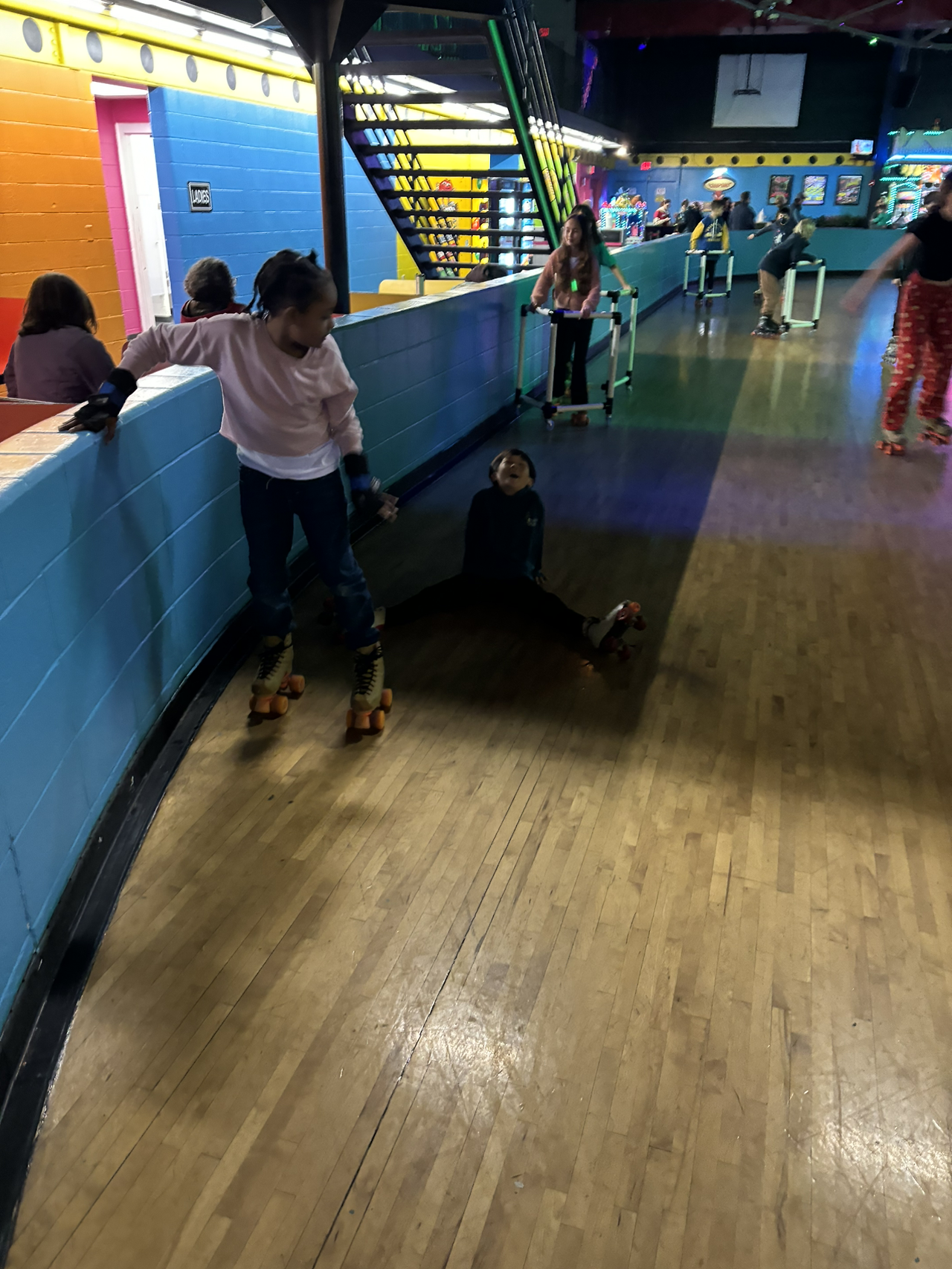 집에서 이른 저녁을 먹고, 차로 25분 거리에 있는 롤러스케이트 장에 도착했다.