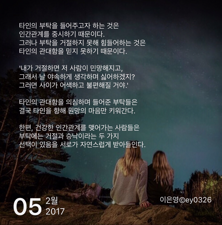 부탁을 거절해서 관계가 위태로워진다면 그건 착취적 관계일 뿐이다.