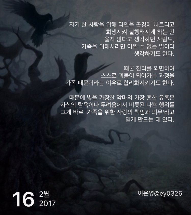 가족 때문이라는 이유로 합리화시키기도 한다.