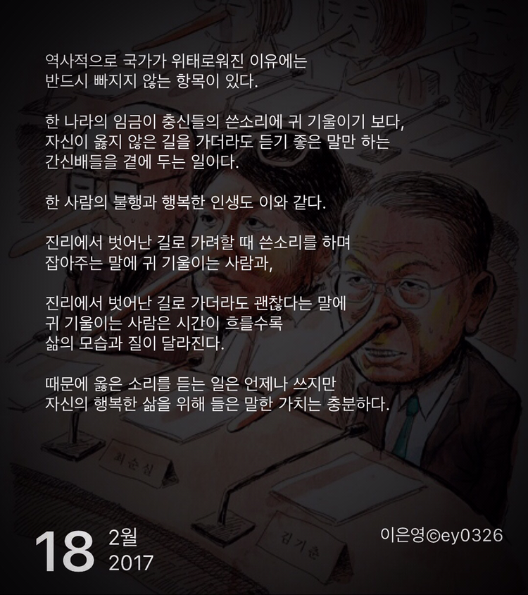 한 나라의 임금이 충신들의 쓴소리에 귀 기울이기 보다,