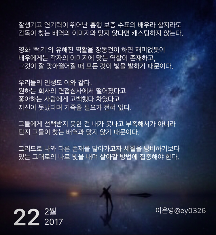 자신이 못났다며 기죽을 필요가 전혀 없다.