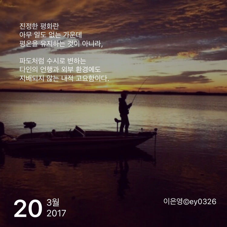 진정한 평화란아무 일도 없는 가운데 평온을 유지하는 것이 아니라,파도처럼 수시로 변하는 타인의 언행과 외부 환경에도 지배되지 않는 내적 고요함이다.