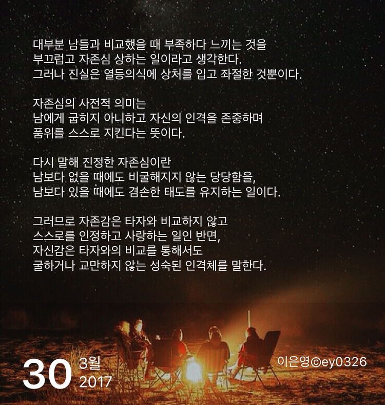 대부분 남들과 비교했을 때 부족하다 느끼는 것을 부끄럽고 자존심 상하는 일이라고 생각한다.