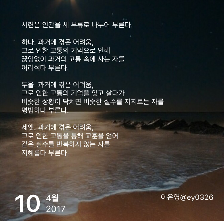 비슷한 상황이 닥치면 비슷한 실수를 저지르는 자를 평범하다 부른다.
