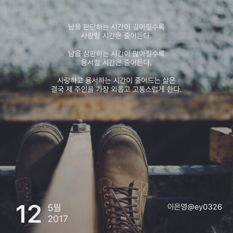타인은 변화시키거나 고쳐 쓸 수 있는 존재가 아니란다. 네가 상대방을 변화시키고자 노력하며 괴로워할 때 | 사랑하는 얘야. 네 입장에서 바라볼 땐 결점 많은 사람일지라도 누군가에게는 있는 그대로의 모습으로도 충분히 괜찮은 사람이란다. 때문에 자신이 변화시킬 수 있다는 생각으로 시작하는 인연은 서로의 영혼이 파괴되는 고통을 겪게 될 것이다. 그러한 관계는 인간적인 욕망과 교만, 이기심에서 출발하기 때문이다. 사람은 고장 난 시계처럼 고쳐 쓰는 존재가 아니다. 그