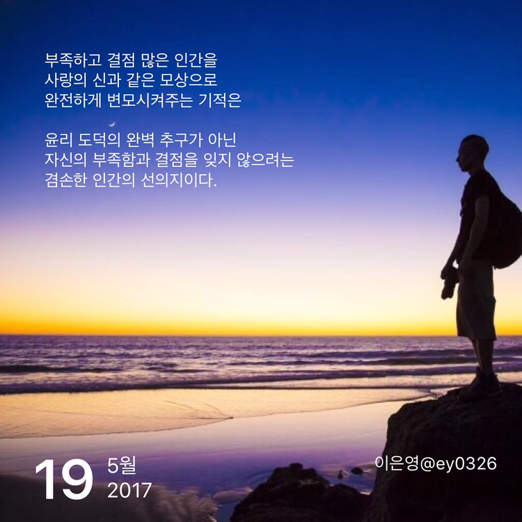 부족하고 결점 많은 인간을 사랑의 신과 같은 모상으로 완전하게 변모시켜주는 기적은윤리 도덕의 완벽 추구가 아닌자신의 부족함과 결점을 잊지 않으려는 겸손한 인간의 선의지이다.