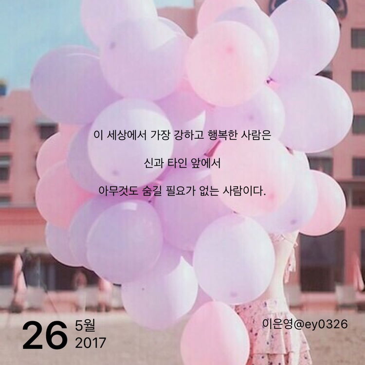 이 세상에서 가장 강하고 행복한 사람은신과 타인 앞에서 아무것도 숨길 필요가 없는 사람이다.