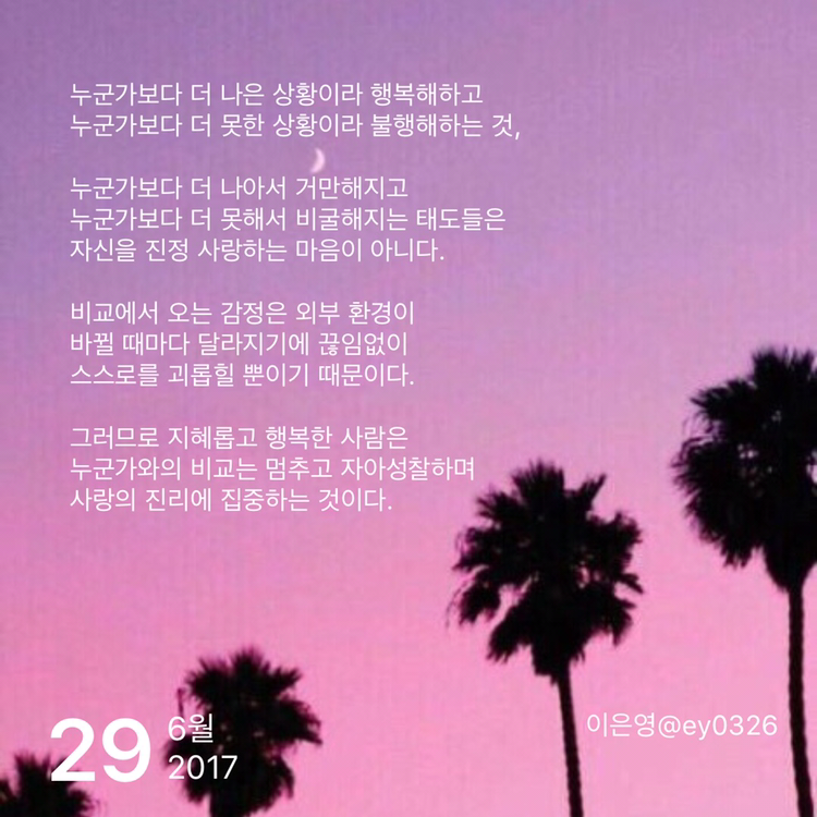 누군가와의 비교는 멈추고 자아성찰하며