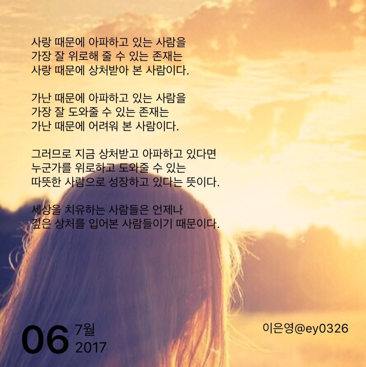 사랑 때문에 상처받아 본 사람이다.