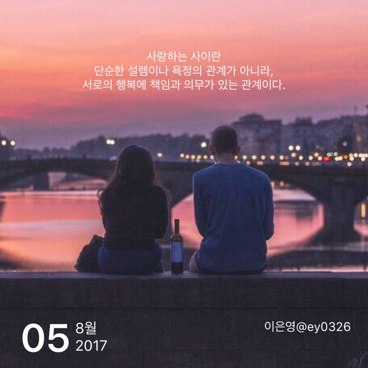 사랑하는 사이란단순한 설렘이나 욕정의 관계가 아니라,서로의 행복에 책임과 의무가 있는 관계이다.
