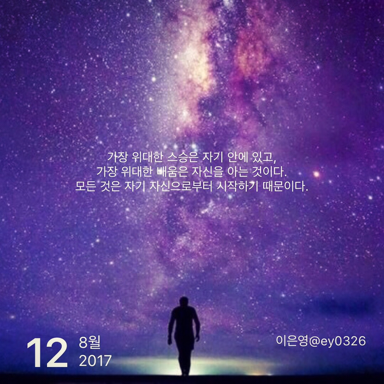 가장 위대한 스승은 자기 안에 있고,가장 위대한 배움은 자신을 아는 것이다.모든 것은 자기 자신으로부터 시작하기 때문이다.
