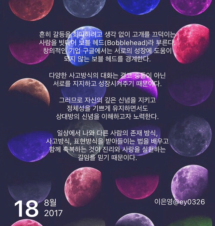 창의적인 기업 구글에서는 서로의 성장에 도움이 되지 않는 보블 헤드를 경계한다.